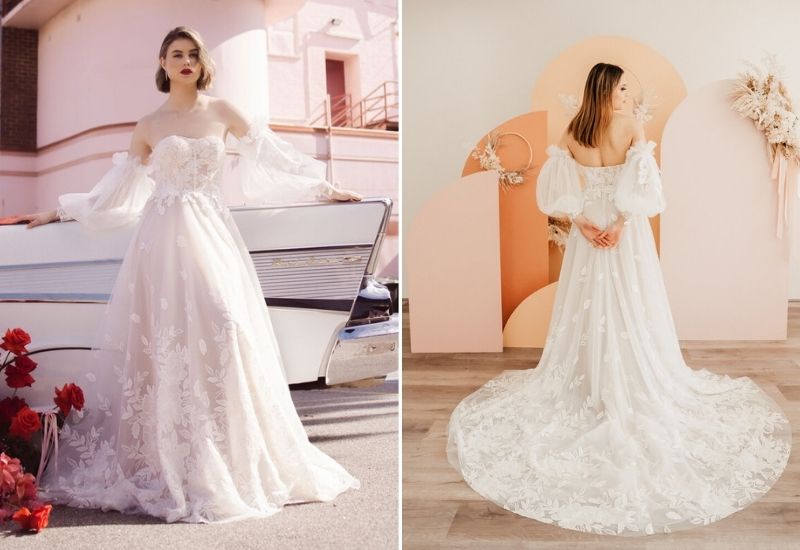 Existem outras variações, como mangas caídas ou fluidas ou tecidos que cobrem parte dos ombros. A escolha vai depender do estilo do casamento e das preferências da noiva.