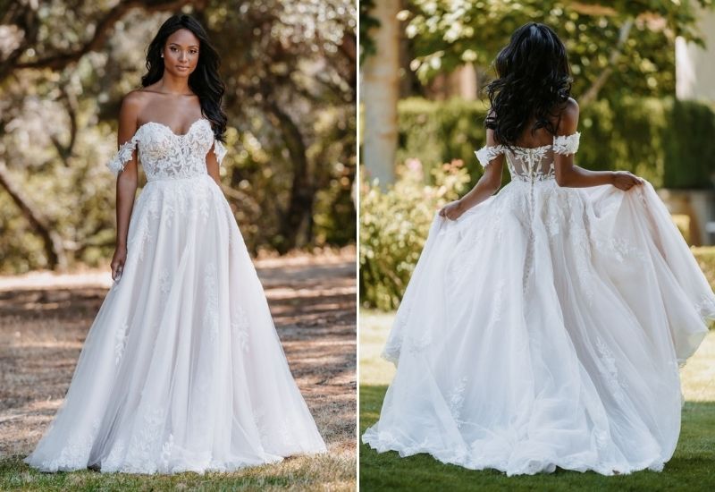 Outro estilo de vestido de noiva Pinterest que tem feito cada vez mais sucesso é o decote ombro a ombro. Ele é semelhante ao tomara-que-caia, mas com algumas particularidades.