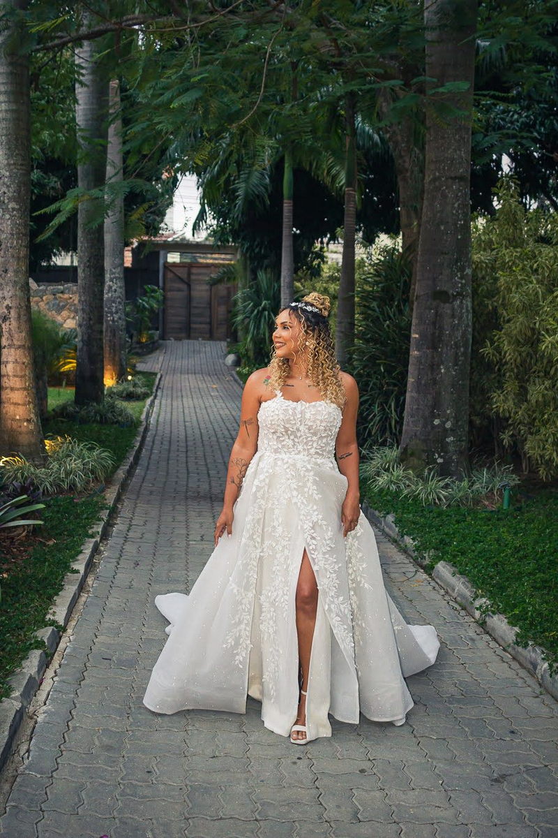 A luz do dia iluminava os jardins da Green House, criando o cenário perfeito para a união de Thaísa e Leandro. Em uma cerimônia que