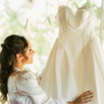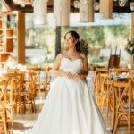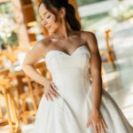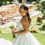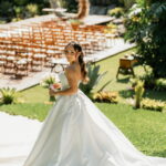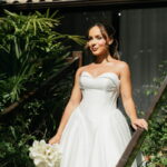 Larissa estava deslumbrante de noiva e encantou a todos com sua beleza única. O seu vestido de noiva La Modelista era uma declaração de romantismo sofisticado. A modelagem super princesa, com busto estruturado e decote tomara que caia com desenho belíssimo de coração, cativava com seu design único. Os detalhes revelavam o cuidado refinado: o acabamento das costas com corselet adicionava sofisticação, enquanto a saia majestosa tornava o look ainda mais elegante. Não havia excessos de aplicações, o foco estava na pureza e na alta qualidade do vestido.