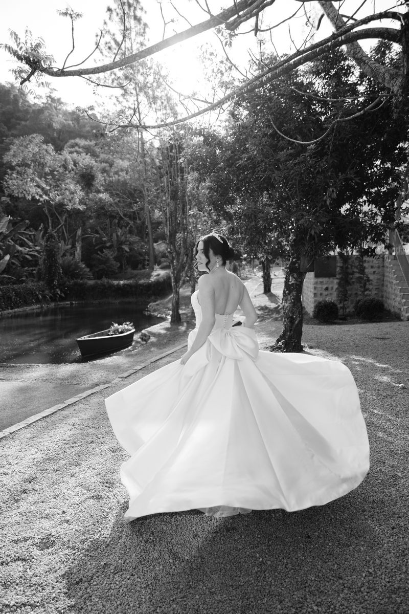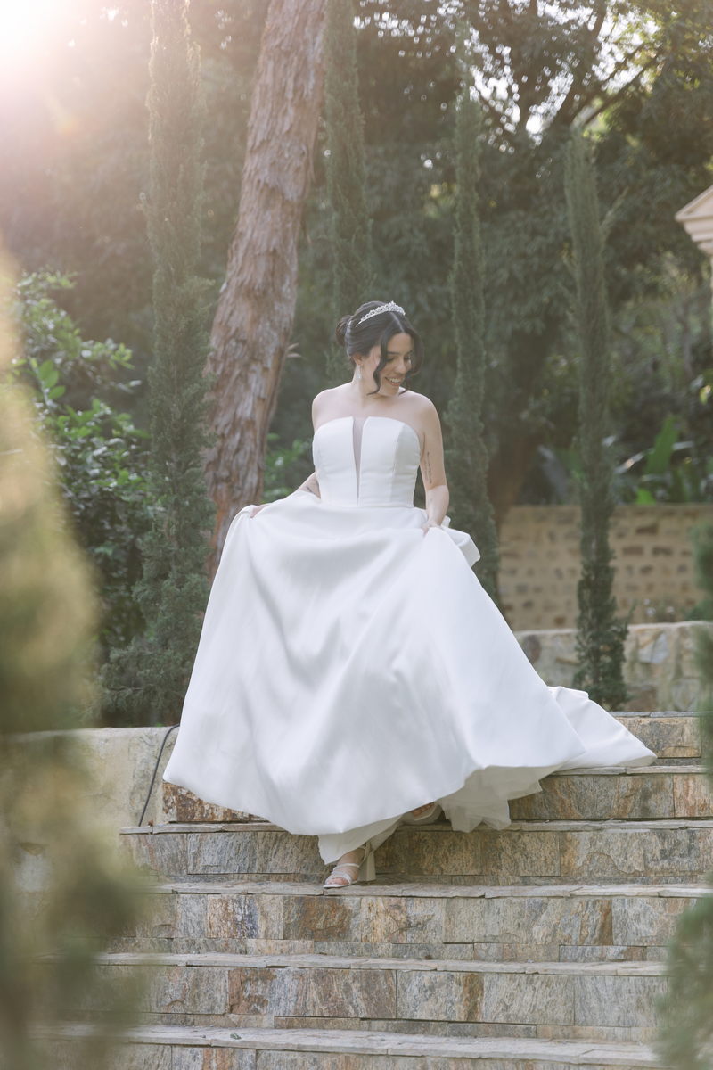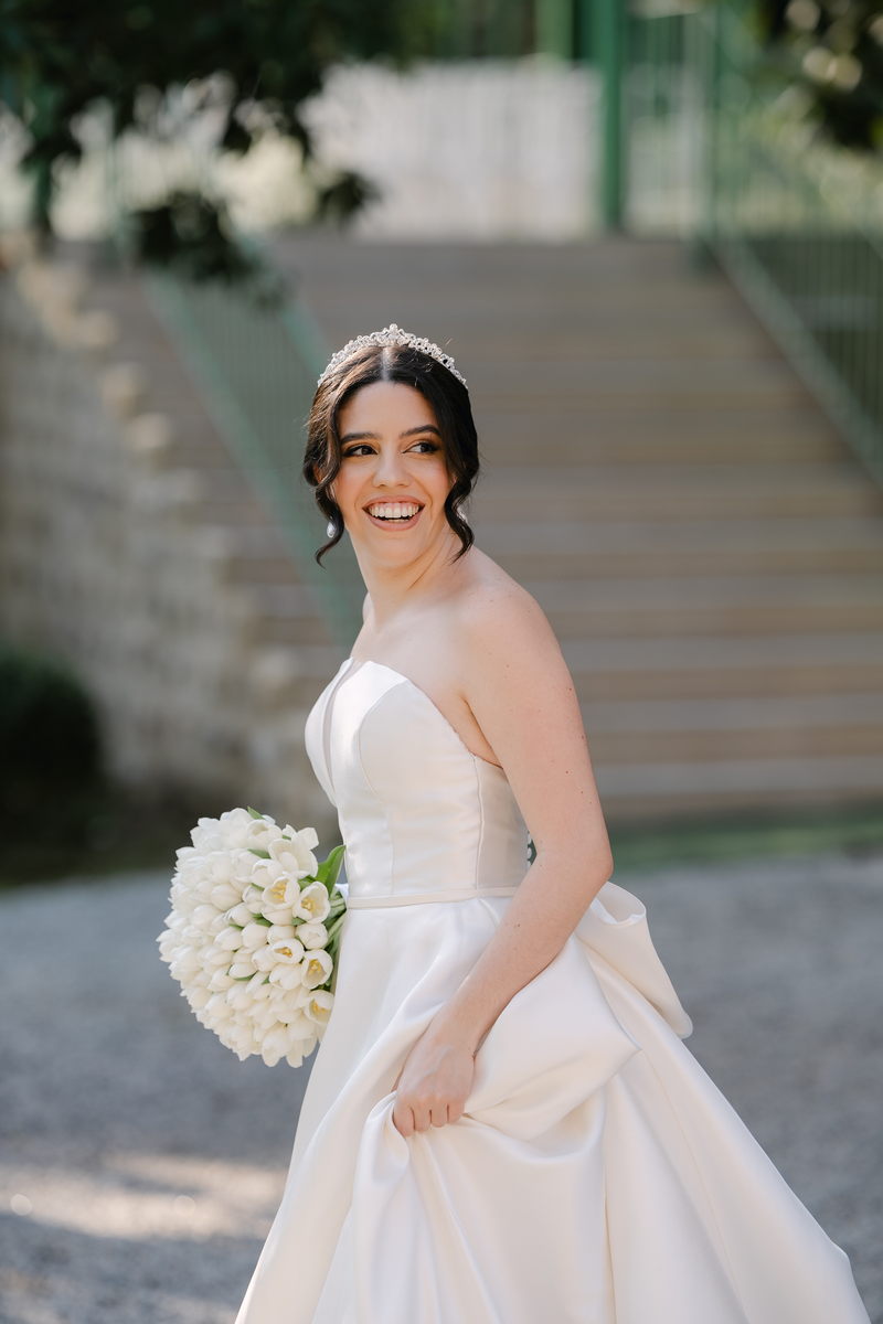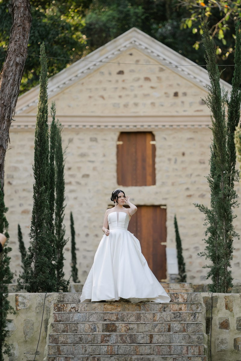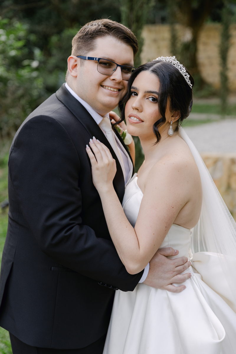 A noiva, Mariana, estava radiante em seu vestido de noiva de tirar o fôlego da loja La Modelista. O modelo estilo princesa tomara que caia, contava com belíssimo detalhe transparente na frente que dava um toque moderno e diferenciado. A saia, uma verdadeira obra de arte: ampla e volumosa, fez Mariana parecer uma princesa de contos de fada. O laço grande nas costas complementou o visual, adicionando um toque de romance e elegância. O cabelo preso e a maquiagem suave, feitos pela talentosa @manurangelmakeup, realçaram a sua beleza natural, de forma encantadora!
