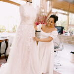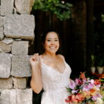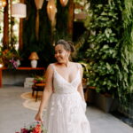 A maquiagem e o penteado adicionaram um charme extra ao seu look encantador. Cada detalhe foi pensado para realçar a sua beleza natural, resultando em uma noiva deslumbrante que irradiava felicidade.