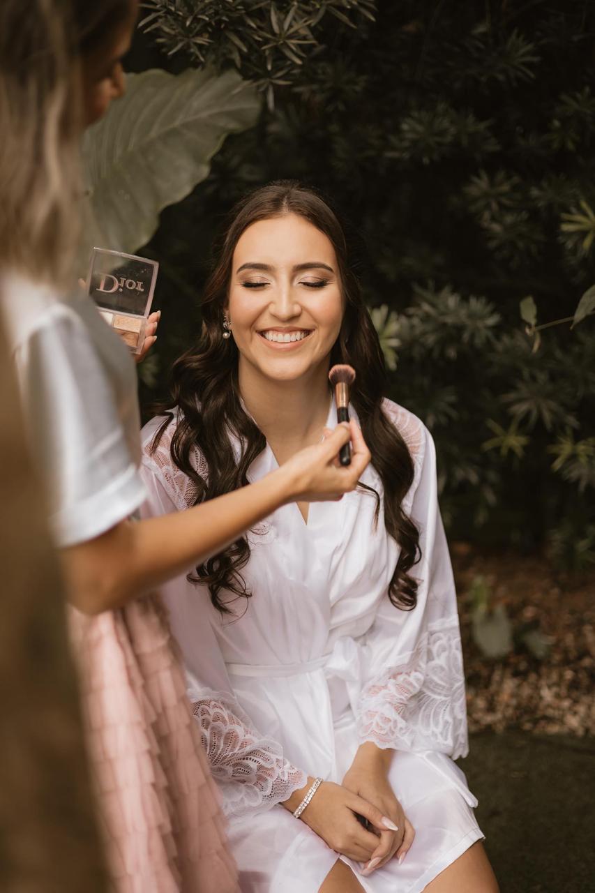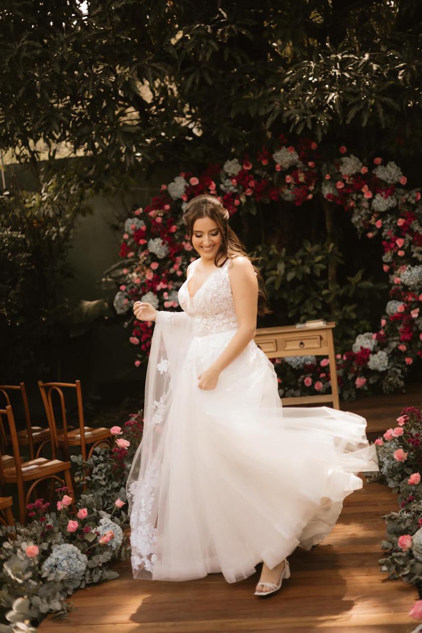 A Júlia estava simplesmente deslumbrante em seu vestido de noiva da renomada loja La Modelista. O modelo estilo princesa era uma obra de arte em tecido, a parte superior se destacou com seus detalhes em renda fina, que trouxe delicadeza e requinte ao look, e a cauda por sua leveza e encanto. A talentosa equipe de beleza da @karencardodobeauty, foi responsável por realçar ainda mais a beleza da noiva, criando uma harmonia perfeita com o vestido e o tema do casamento.