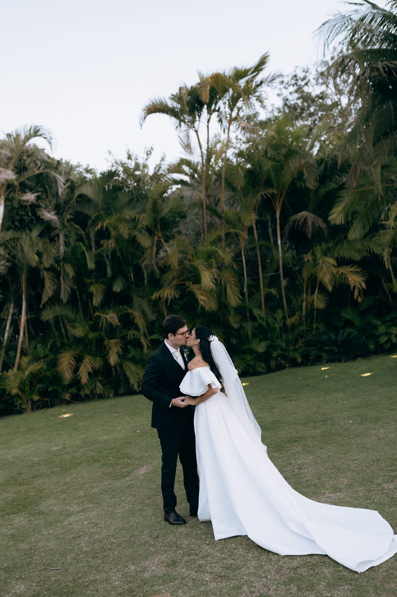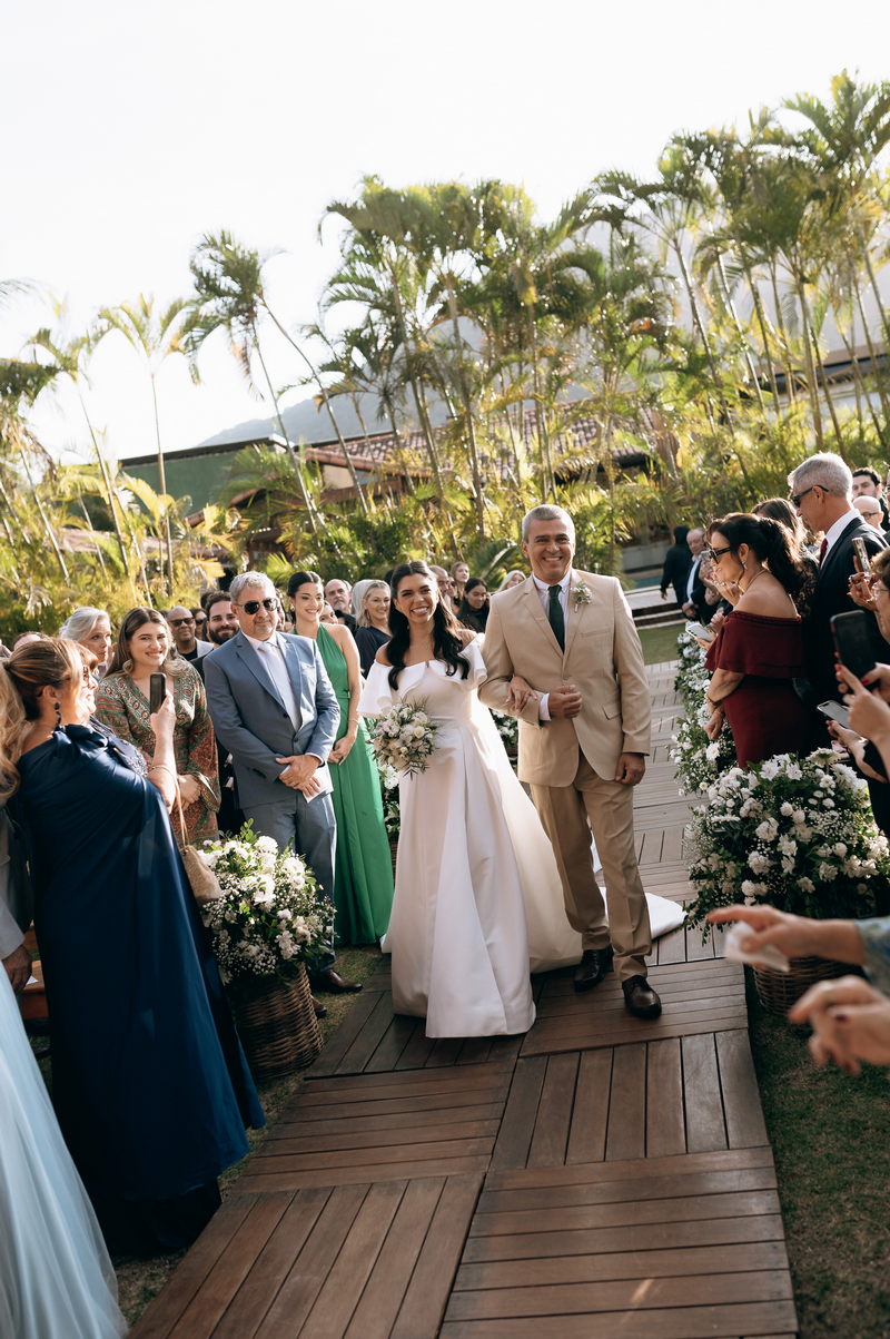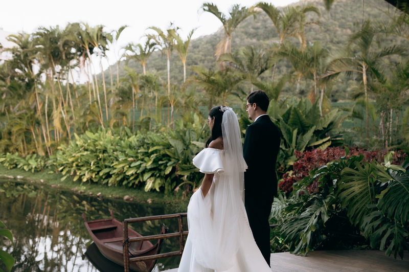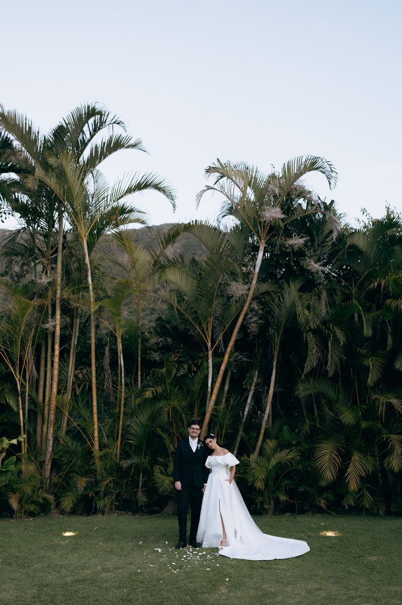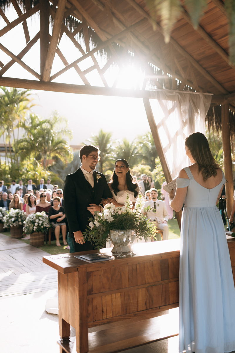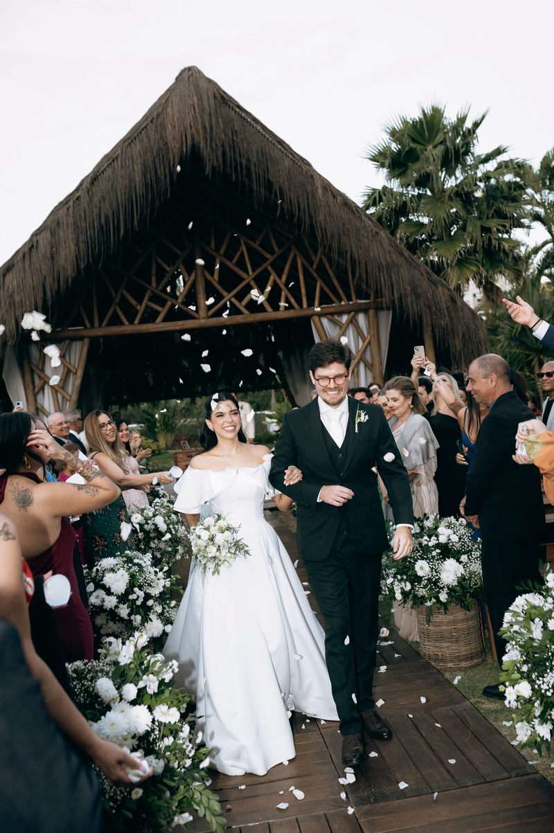 Em um dia de sol abençoado, com o verde exuberante da natureza como cenário, Camila e Mark selaram seu amor em uma cerimônia que transbordava elegância e autenticidade.