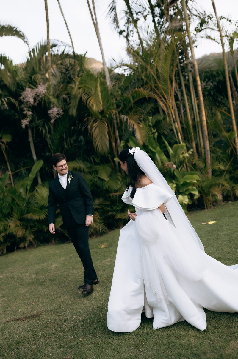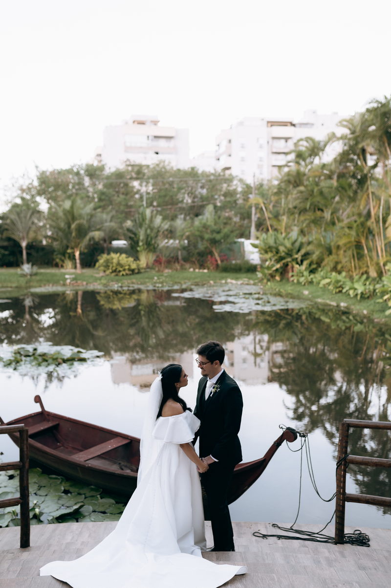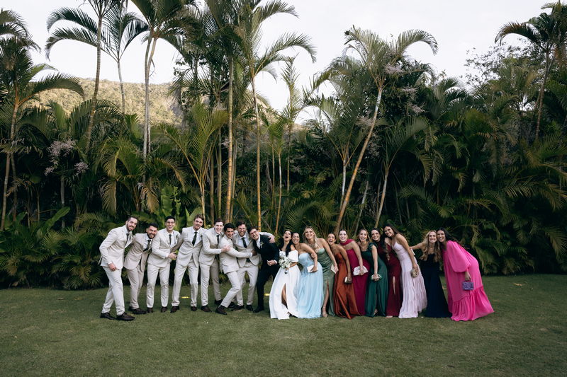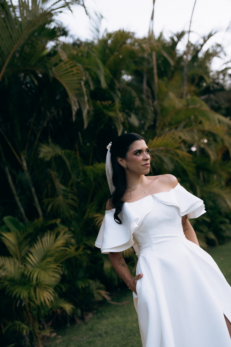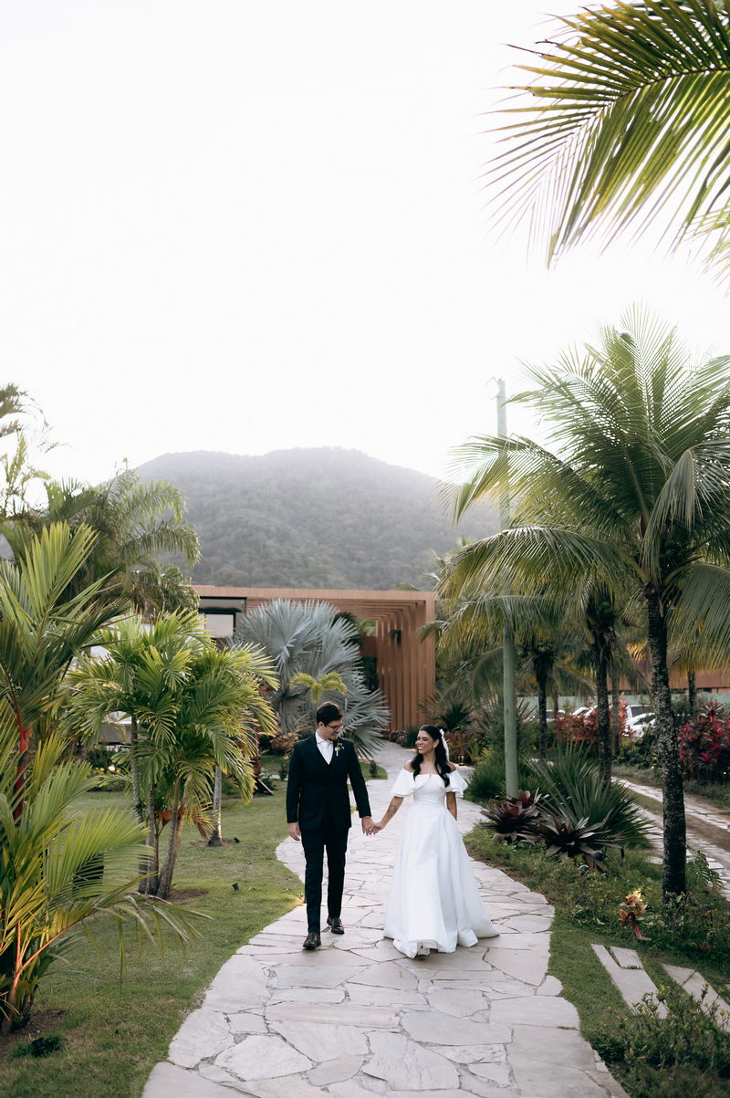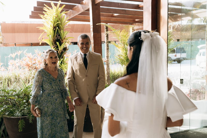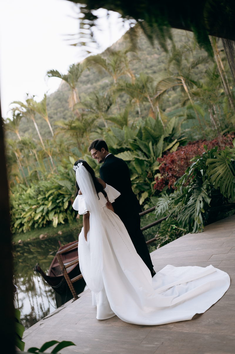 Em um dia de sol abençoado, com o verde exuberante da natureza como cenário, Camila e Mark selaram seu amor em uma cerimônia que transbordava elegância e autenticidade.