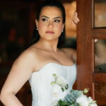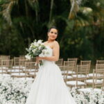 Ana Beatriz estava simplesmente deslumbrante. Com um sorriso sereno que irradiava alegria, ela caminhou em direção ao altar com uma presença marcante e uma elegância natural. O vestido de noiva, assinado pela La Modelista, era uma tradução perfeita de sua personalidade. O grande destaque da peça foi corselet, uma tendência que une estrutura e delicadeza de forma magistral. O tomara-que-caia valorizou seu colo, enquanto o trançado nas costas adicionou um toque de charme e romantismo. A saia, de tecido liso e elegante, trouxe movimento e leveza ao visual completando a imagem de uma noiva moderna e atemporal. Sua beleza foi realçada por uma produção impecável de @flaviaalexandramakeup, que apostou em uma maquiagem leve e penteado que transmitiam sofisticação.