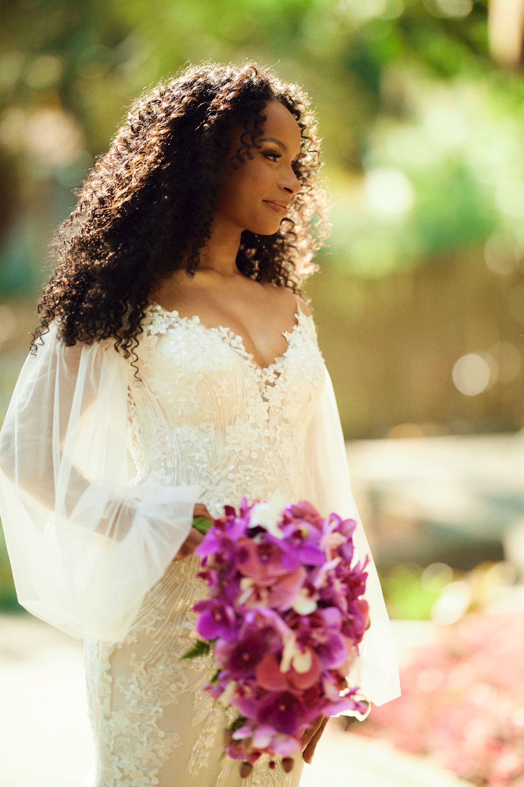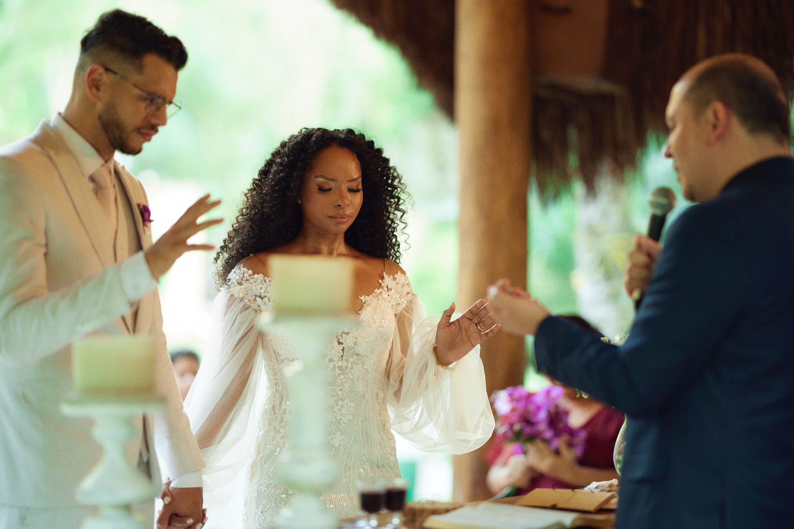 A Mariana estava simplesmente deslumbrante, vestindo o seu modelo da La Modelista. O vestido de noiva estilo sereia, todo rendado e com mangas belíssimas, complementou a sua beleza natural de forma elegante e encantadora. A maquiagem e o cabelo, obra da talentosa @Joycebarbosabeauty, realçaram ainda mais a beleza da noiva, respeitando sua essência e estilo, e garantindo que ela brilhasse do início ao fim da celebração.