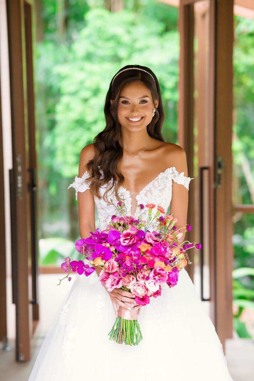 Para que tudo fosse perfeito, Camile e João Levi contaram com uma equipe de fornecedores excepcionais. A produção da noiva, assinada por @thaisbenites, garantiu que Camile estivesse impecável, realçando sua beleza de forma sutil e elegante, pronta para brilhar em seu casamento ao ar livre.