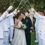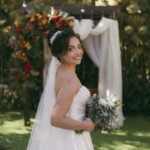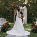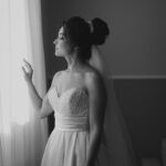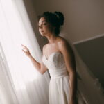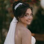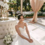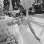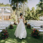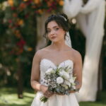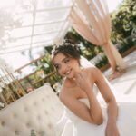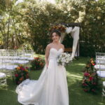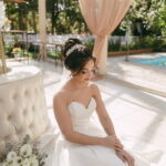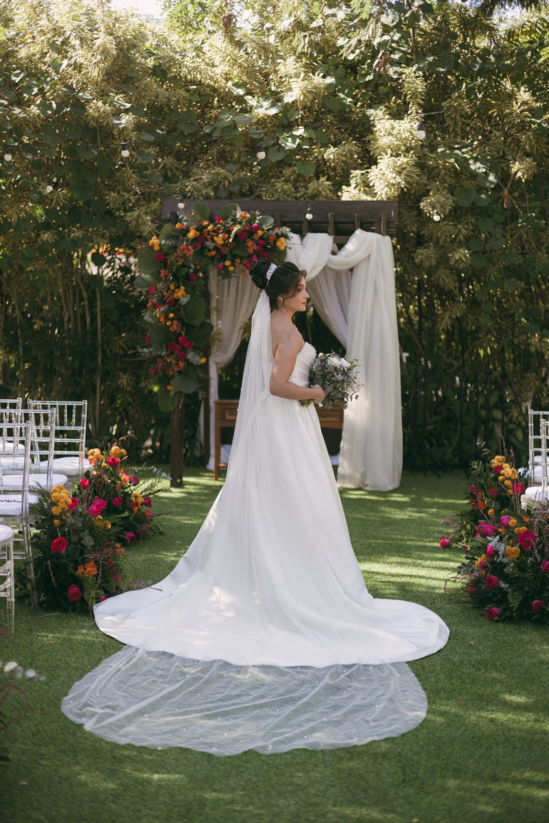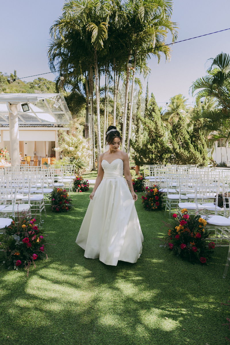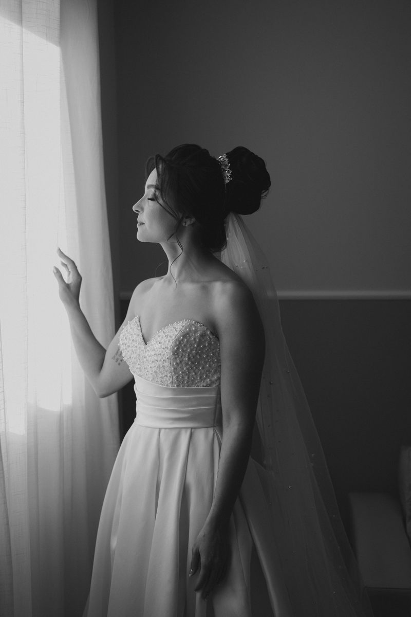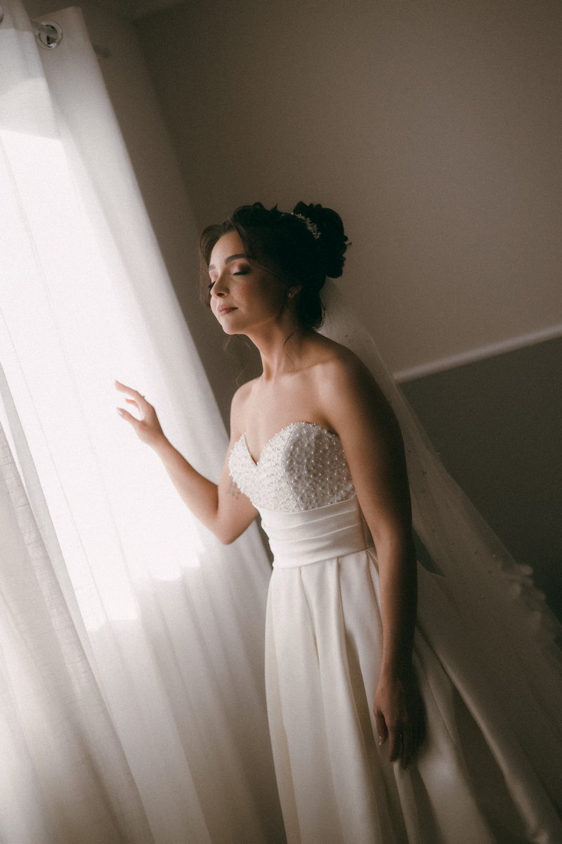 A Letícia estava belíssima de noiva! Ela escolheu um vestido de noiva La Modelista modelo evasê tomara que caia, com uma cauda maravilhosa. A peça se destacava pelo seu corpete estruturado com detalhes delicados em pérolas, que complementavam o minimalismo do vestido de forma romântica e sofisticada. A produção da noiva ficou por conta da talentosa @atelierbrunaguimaraes, que criou um visual natural e luminoso, realçando a beleza única da Letícia.
