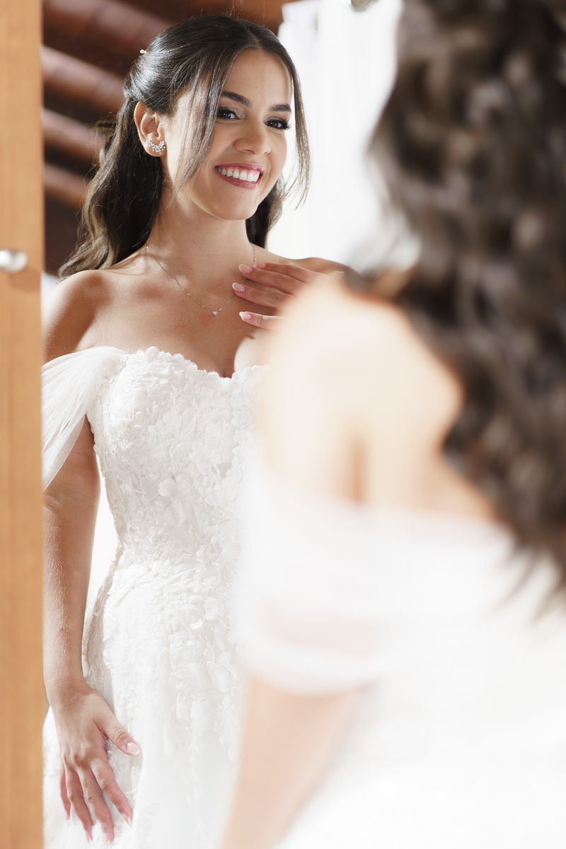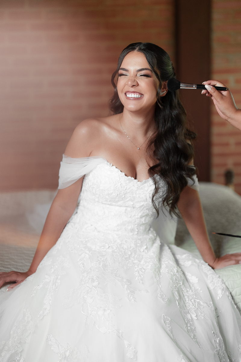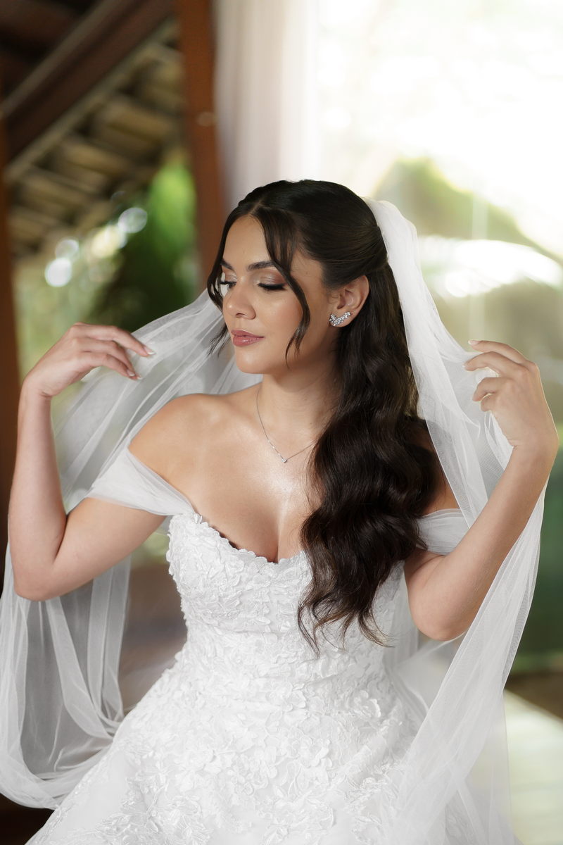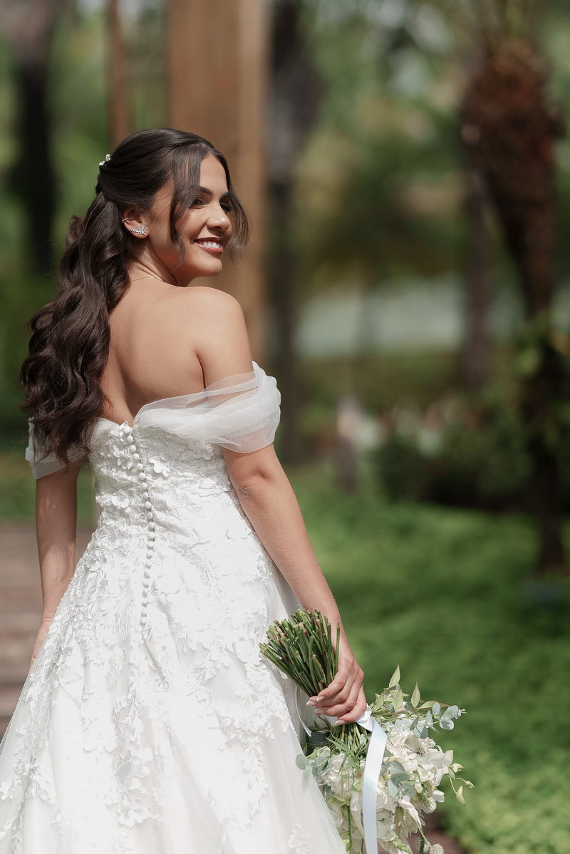 A bela Ana Luiza encantou a todos com seu vestido de noiva La Modelista, um verdadeiro tributo à elegância e à delicadeza. O modelo estilo princesa, com uma renda deslumbrante e mangas delicadas, capturou perfeitamente a essência da feminilidade moderna. Para realçar ainda mais sua beleza natural, a noiva confiou sua maquiagem à talentosa @natimakeup e seu penteado ao habilidoso @lucianobaronne. O resultado foi simplesmente deslumbrante, um equilíbrio perfeito entre o glamour e a suavidade, destacando sua beleza única de forma imensurável!