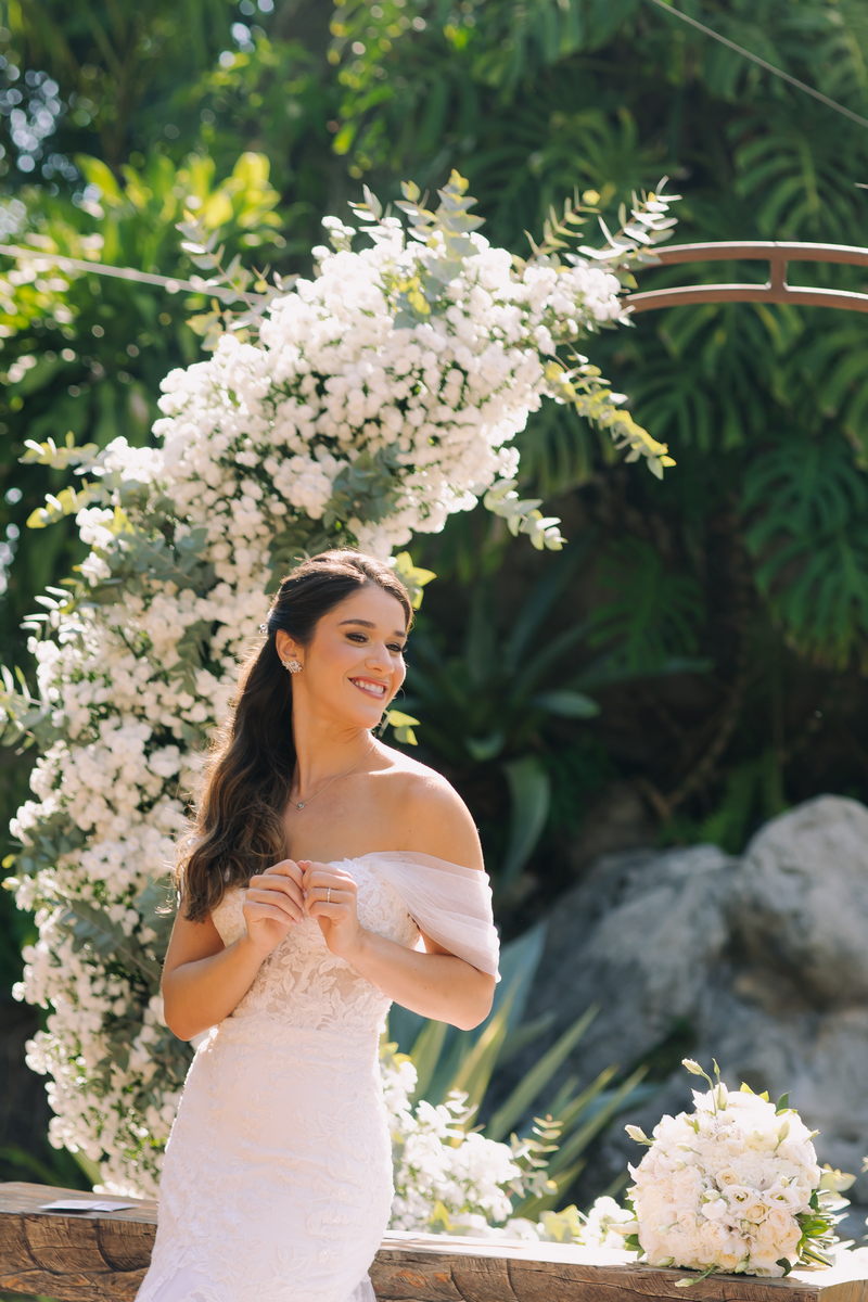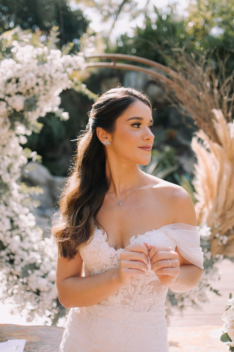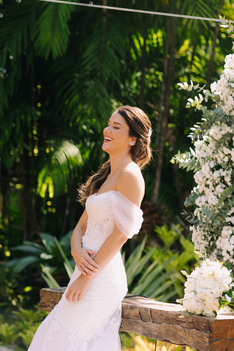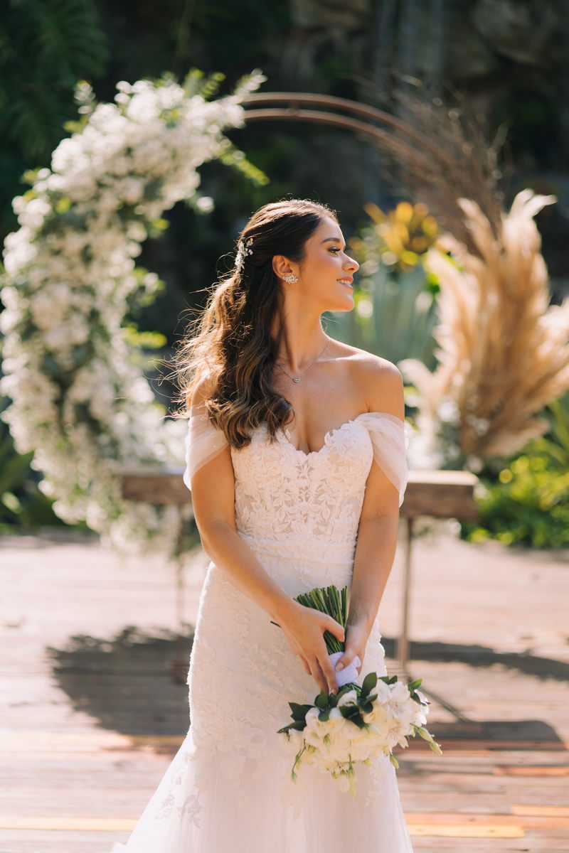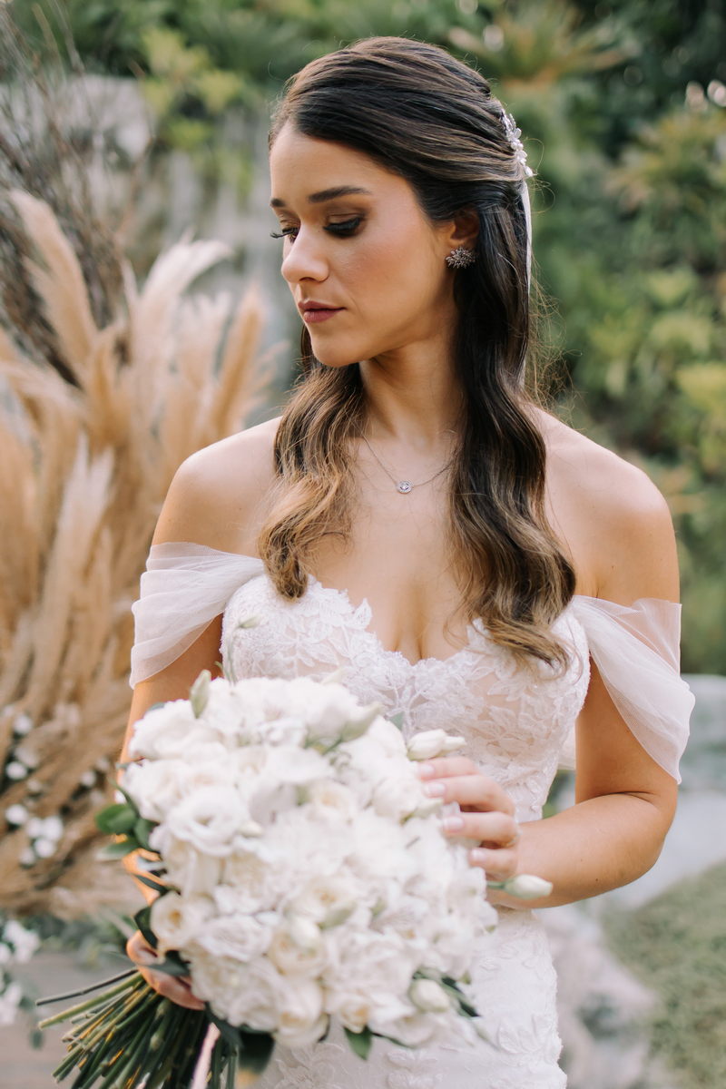 A Camila estava absolutamente divina em seu vestido de noiva da La Modelista. O modelo estilo sereia, todo adornado com rendas delicadas, se destacou pelo perfeito decote nas costas com renda e transparência, e suas mangas encantadoras. A maquiagem, obra da talentosa @mari.walsh, conseguiu realçar ainda mais a beleza da noiva com um look impecável e belo. Amamos!