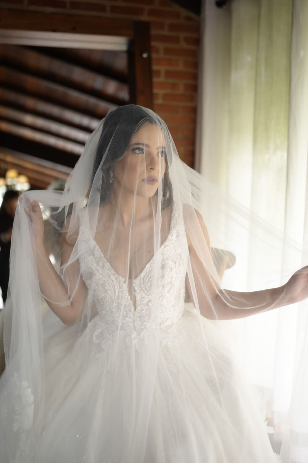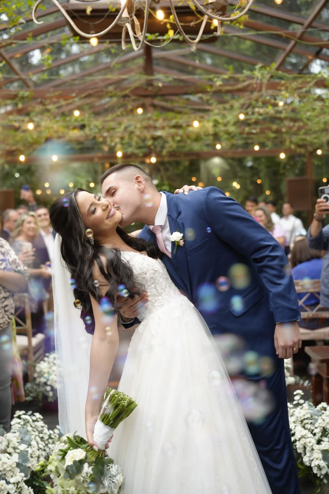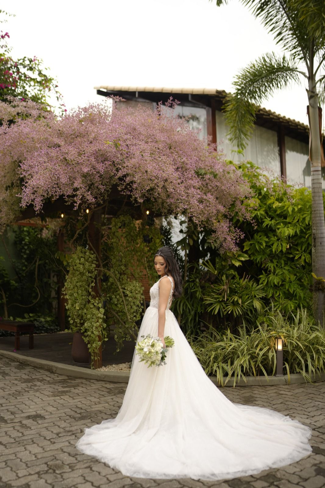 A Larissa caminhou rumo ao altar com um vestido de noiva belíssimo da loja La Modelista. O seu modelo estilo princesa, romântico e leve, com detalhes perfeitos em renda diferenciada e uma cauda maravilhosa, seguiu seus passos com graciosidade. A maquiagem e o cabelo impecáveis foram obra-prima da talentosa @isiscardosobeauty, cada traço e penteado refletiram a personalidade da noiva, adicionando um toque de autenticidade à sua beleza natural.