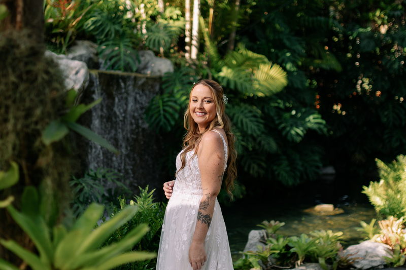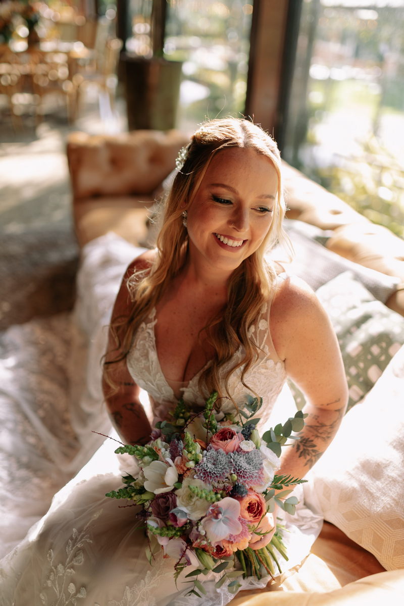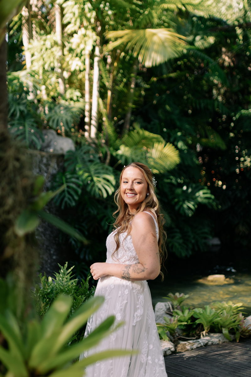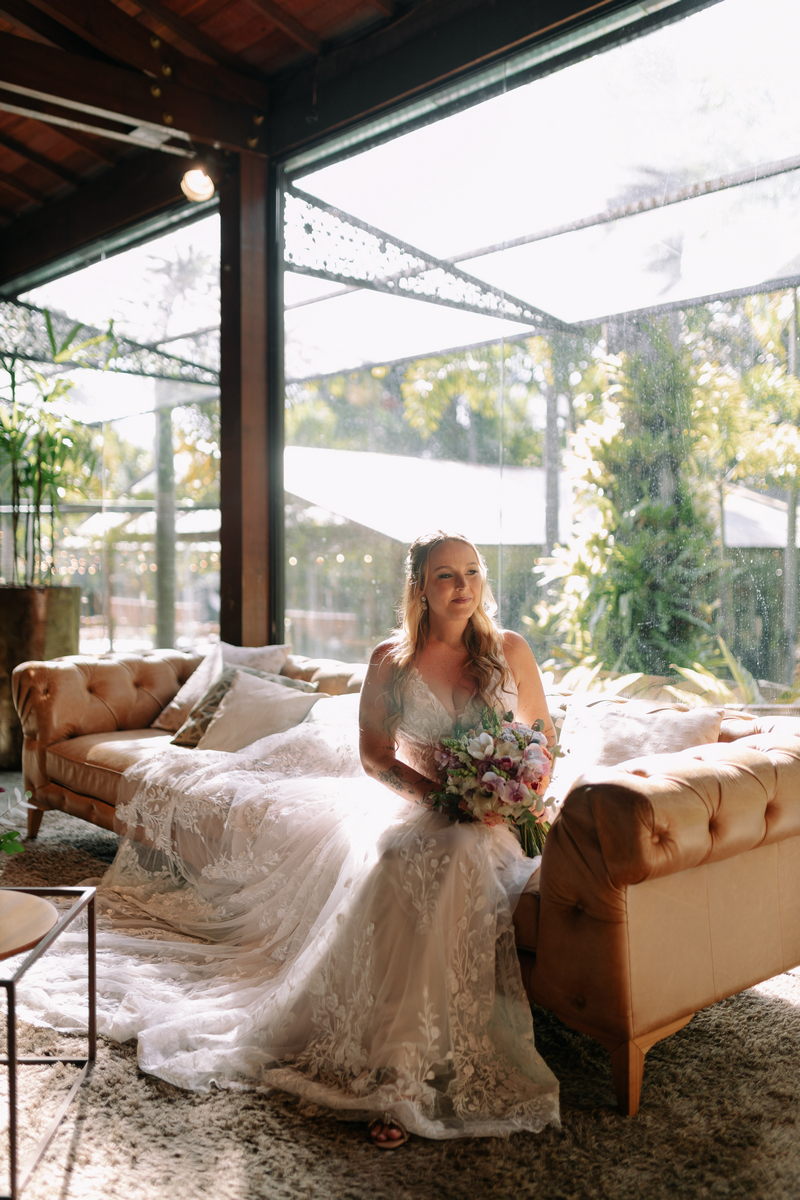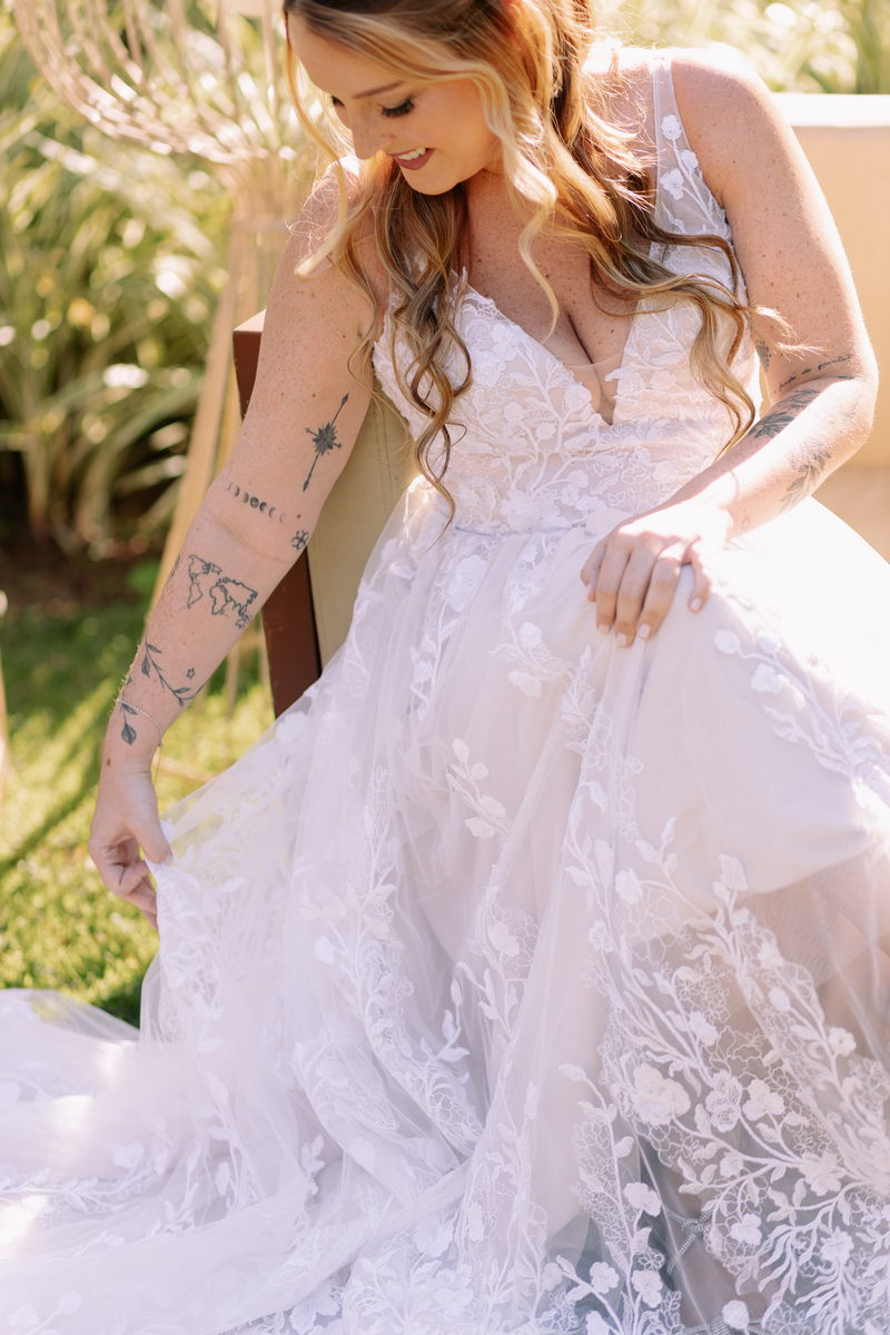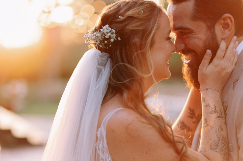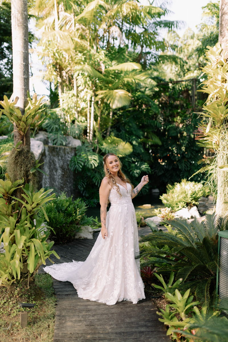 O destaque da cerimônia foi, sem dúvida, o magnífico vestido de noiva da Winnie, da marca La Modelista. Um modelo estilo princesa, cuidadosamente rendado, onde cada detalhe  parecia contar a história de sua jornada até aquele momento. O trabalho em transparência nas costas acrescentou um toque de modernidade e que trouxe ainda mais encanto. A maquiagem delicada e refinada da @sol_vianna ressaltou a expressão radiante da noiva, complementando perfeitamente o seu vestido e a atmosfera do casamento ao ar livre.