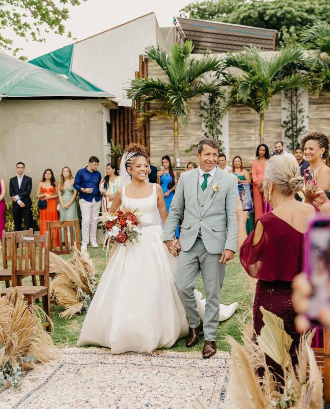 O destaque da cerimônia foi a noiva Liza, que optou por um modelo minimalista da renomada loja La Modelista. Um vestido de noiva super elegante, adornado com uma cauda glamorosa e um cinto maravilhoso que adicionou o toque perfeito. A beleza ficou por conta da talentosa @vivigarciabeauty, cuja maquiagem realçou a elegância da noiva. E o cabelo, produzido pela @_suelenpaiva, complementou o visual de forma delicada, finalizando seu look impecável.