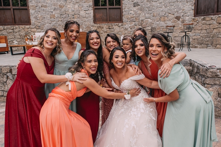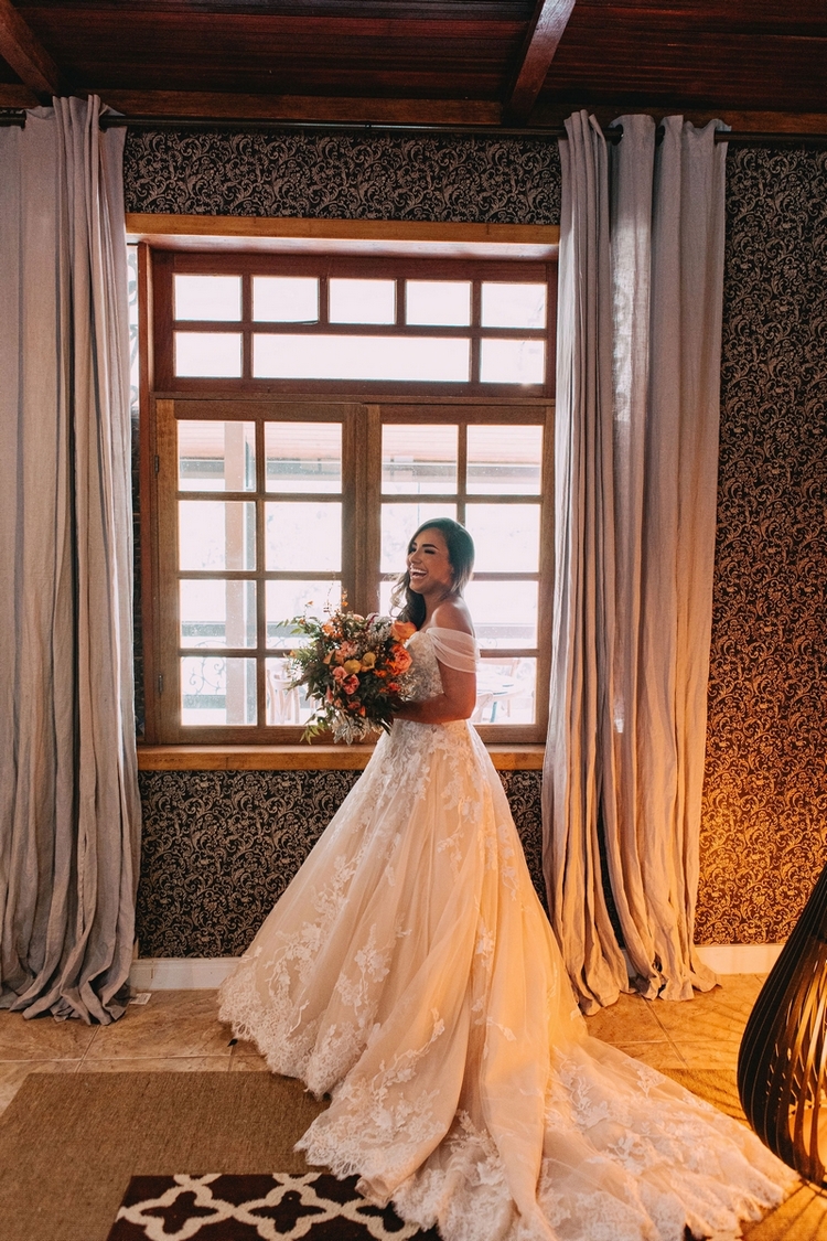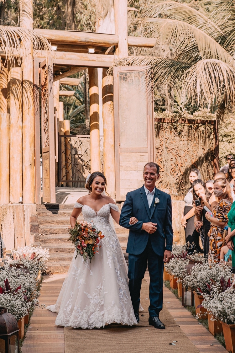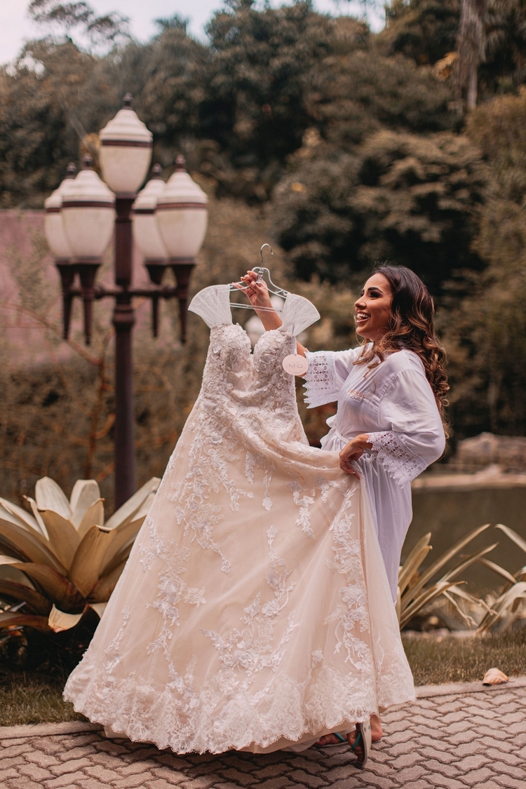 A Andressa se casou um um vestido de noiva belíssimo da La Modelista, um modelo princesa com manga maravilhosa, delicada e romântica e detalhes em renda exclusivos, destacando ainda mais a sua beleza. Amamos o buquê colorido e a maquiagem encantadora!