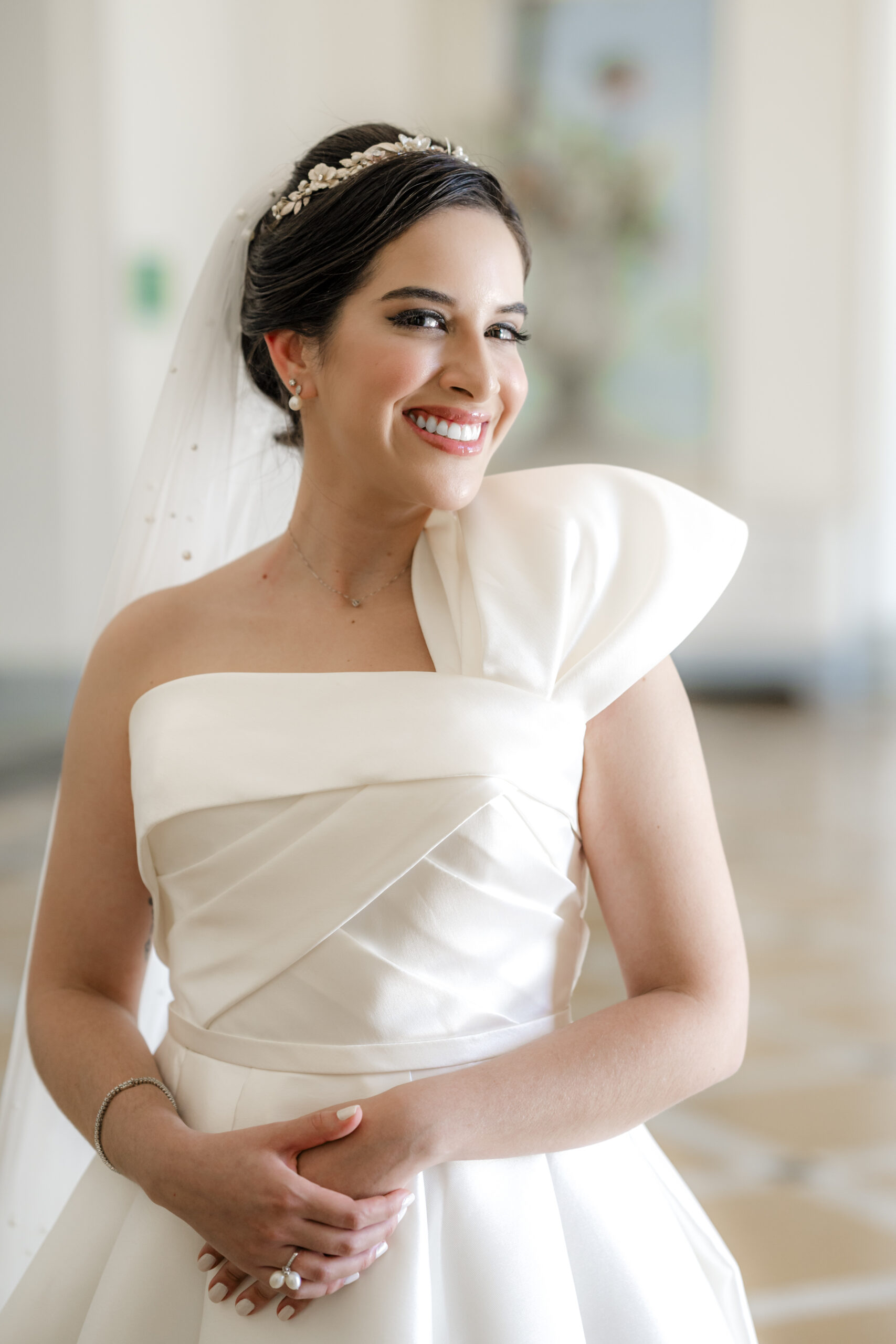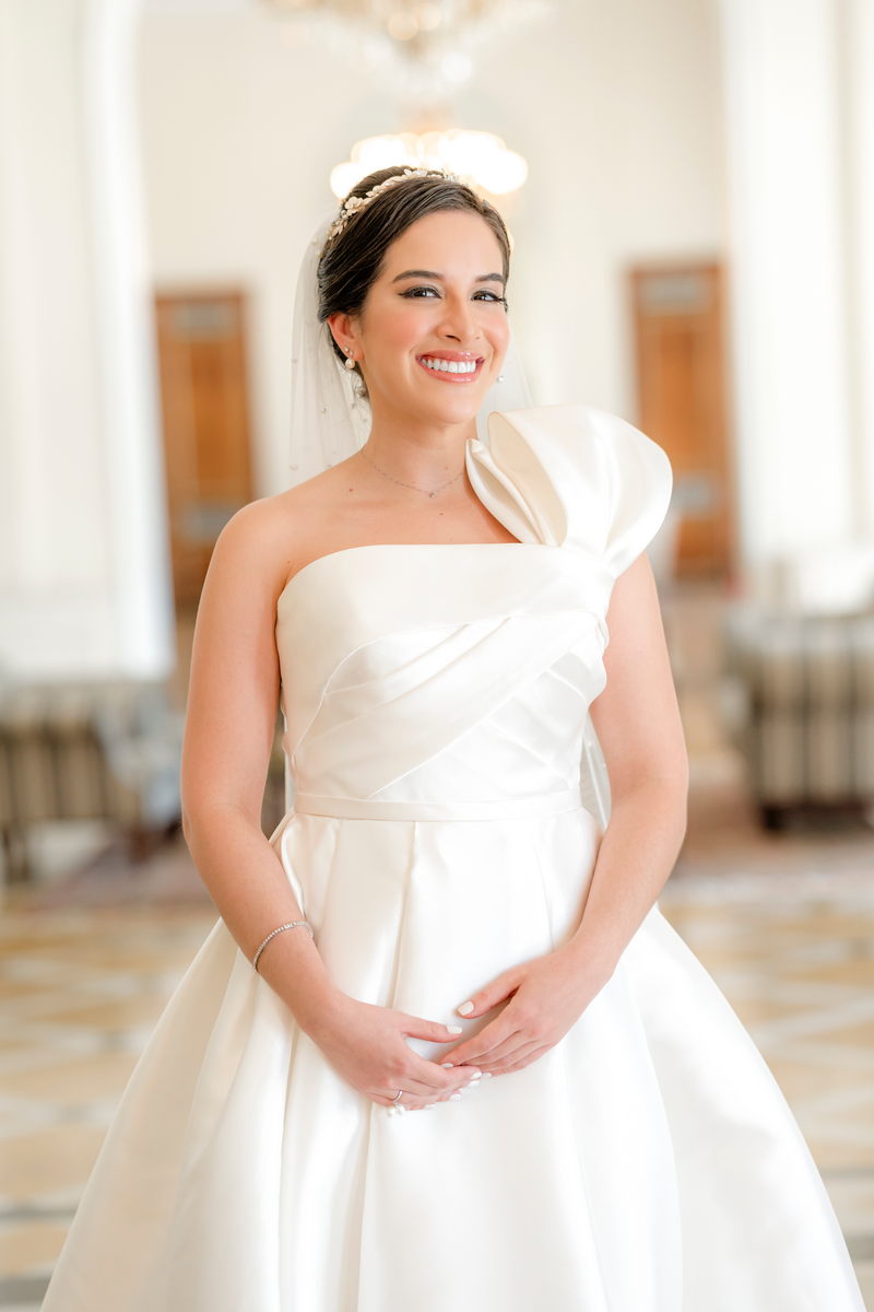 A Paola estava absolutamente deslumbrante em seu vestido de noiva da La Modelista. O modelo estilo princesa minimalista, de um ombro só, era a personificação da elegância e sofisticação. A assimetria do decote adicionou um toque moderno e chique ao vestido, enquanto o corte impecável valorizava as suas curvas de maneira sutil e graciosa. O tecido de alta qualidade permitiu que a beleza natural da noiva brilhasse, fazendo com que ela se destacasse como a verdadeira estrela do seu grande dia.