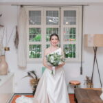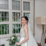 A Bel estava absolutamente deslumbrante em seu vestido de noiva minimalista. O design diferenciado de um ombro só, adicionou um toque de sofisticação e modernidade ao look. A saia do vestido apresentava uma fenda frontal elegante, que conferiu movimento e graça a cada passo da noiva. O vestido da renomada loja de noiva La Modelista, foi a escolha perfeita, destacando a beleza e seu estilo único.