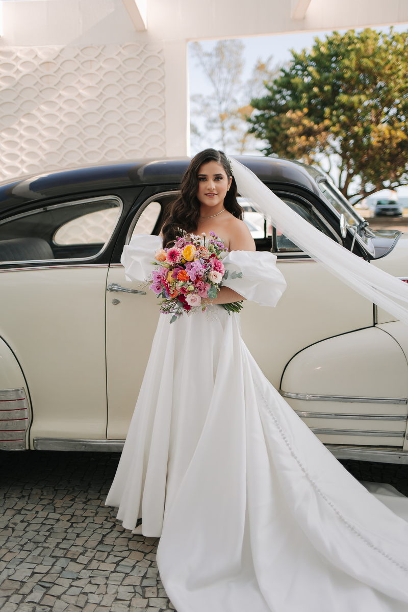 A beleza impecável de Sofia ganhou ainda mais destaque com as mãos talentosas de @annajuliamt, que criou uma maquiagem delicada, realçando a naturalidade da noiva sem exageros. O resultado foi um visual elegante e atemporal, perfeito para um dia tão especial.