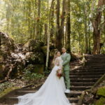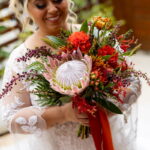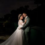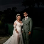 Nos detalhes, uma tiara de cristais realça o penteado preso e depois, a noiva opta por um penteado semipreso para os retratos ao ar livre. A maquiagem assinada por @marcellymenendes trouxe um visual marcante, com olhar estruturado, intensidade nos olhos e pele luminosa que se manteve impecável do início ao fim. Os registros de @claudioportofotografia foram rápidos, precisos e sensíveis, perfeitos para retratar cada momento do dia.