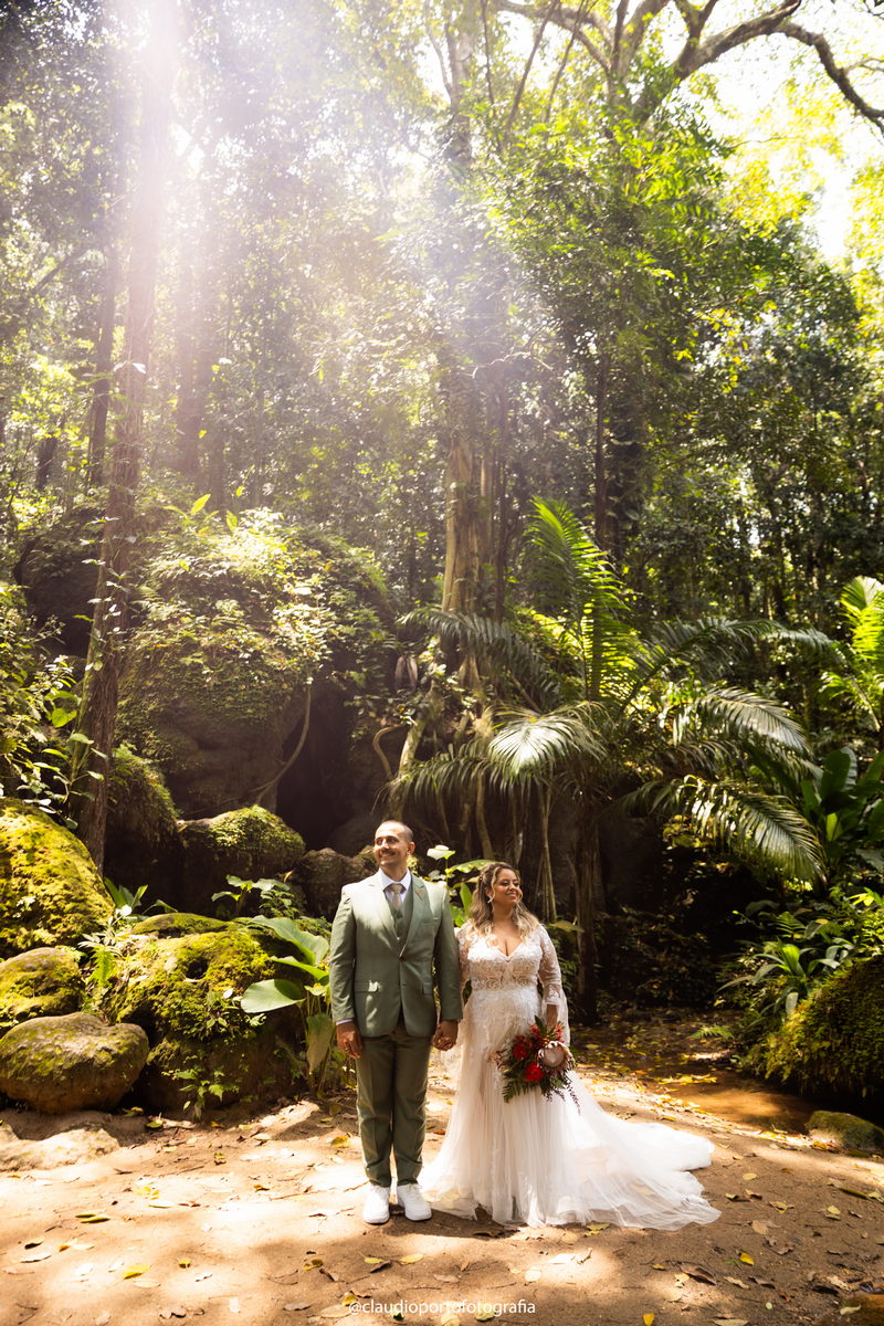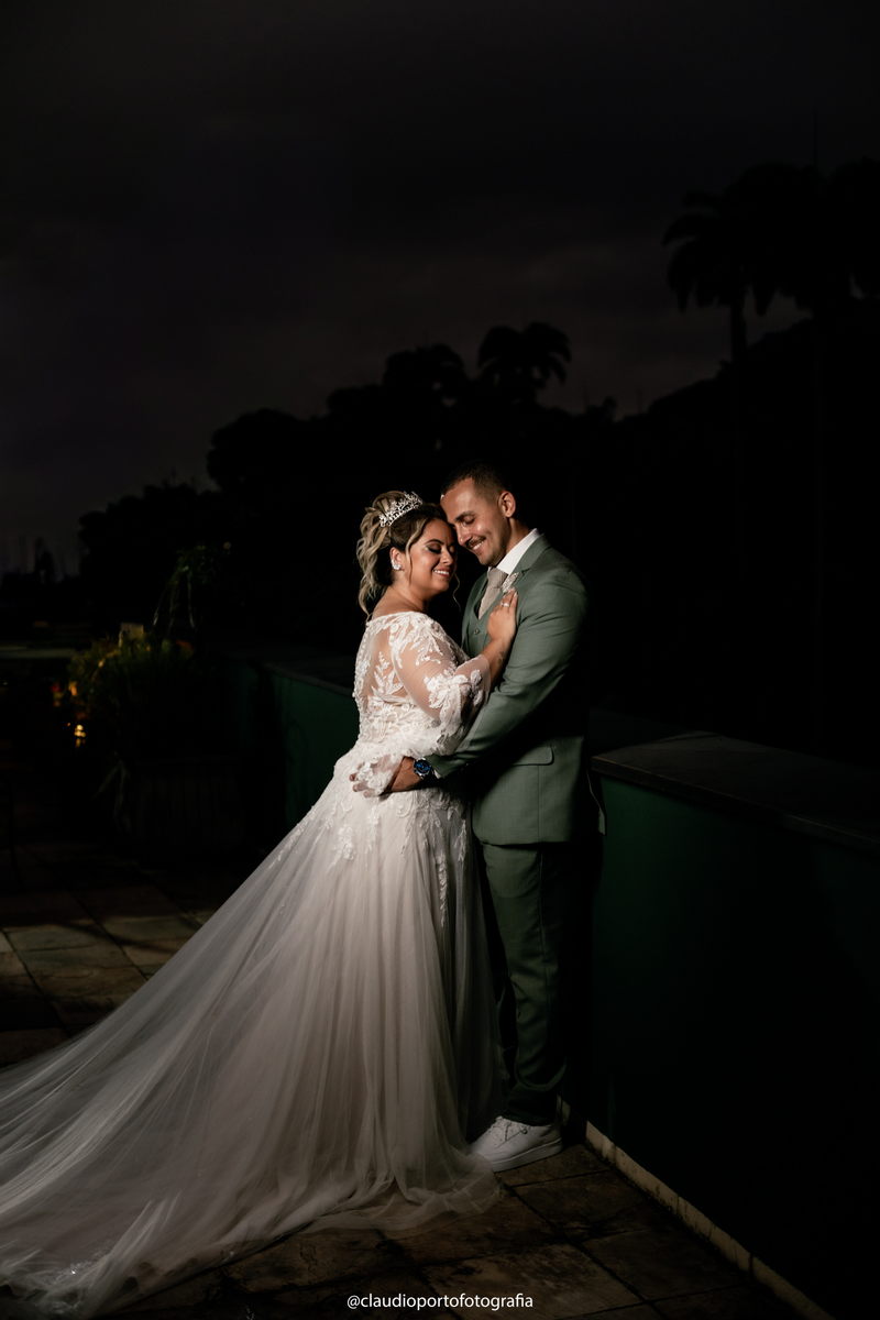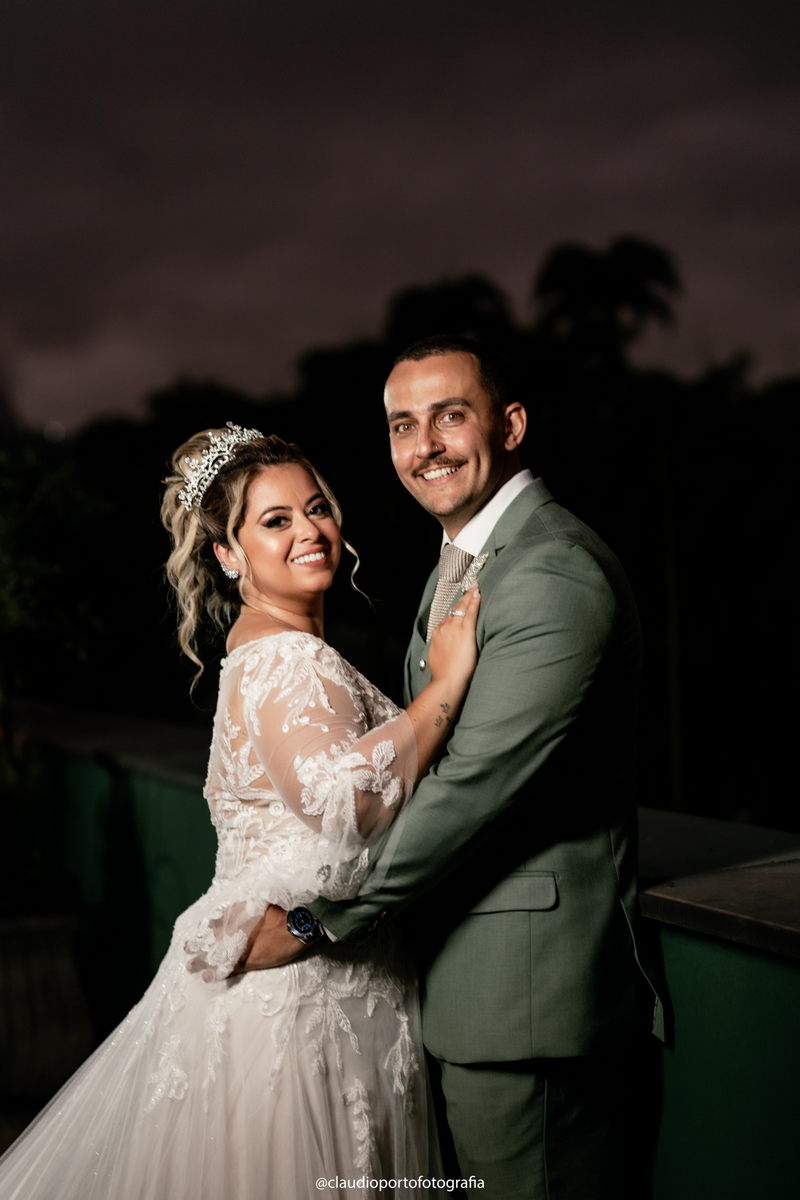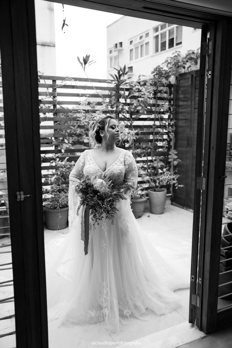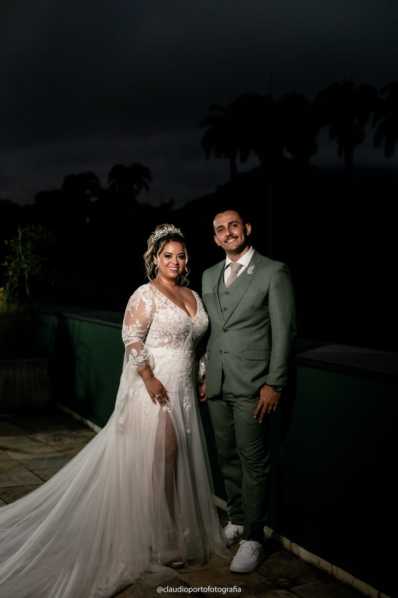 Nos detalhes, uma tiara de cristais realça o penteado preso e depois, a noiva opta por um penteado semipreso para os retratos ao ar livre. A maquiagem assinada por @marcellymenendes trouxe um visual marcante, com olhar estruturado, intensidade nos olhos e pele luminosa que se manteve impecável do início ao fim. Os registros de @claudioportofotografia foram rápidos, precisos e sensíveis, perfeitos para retratar cada momento do dia.
