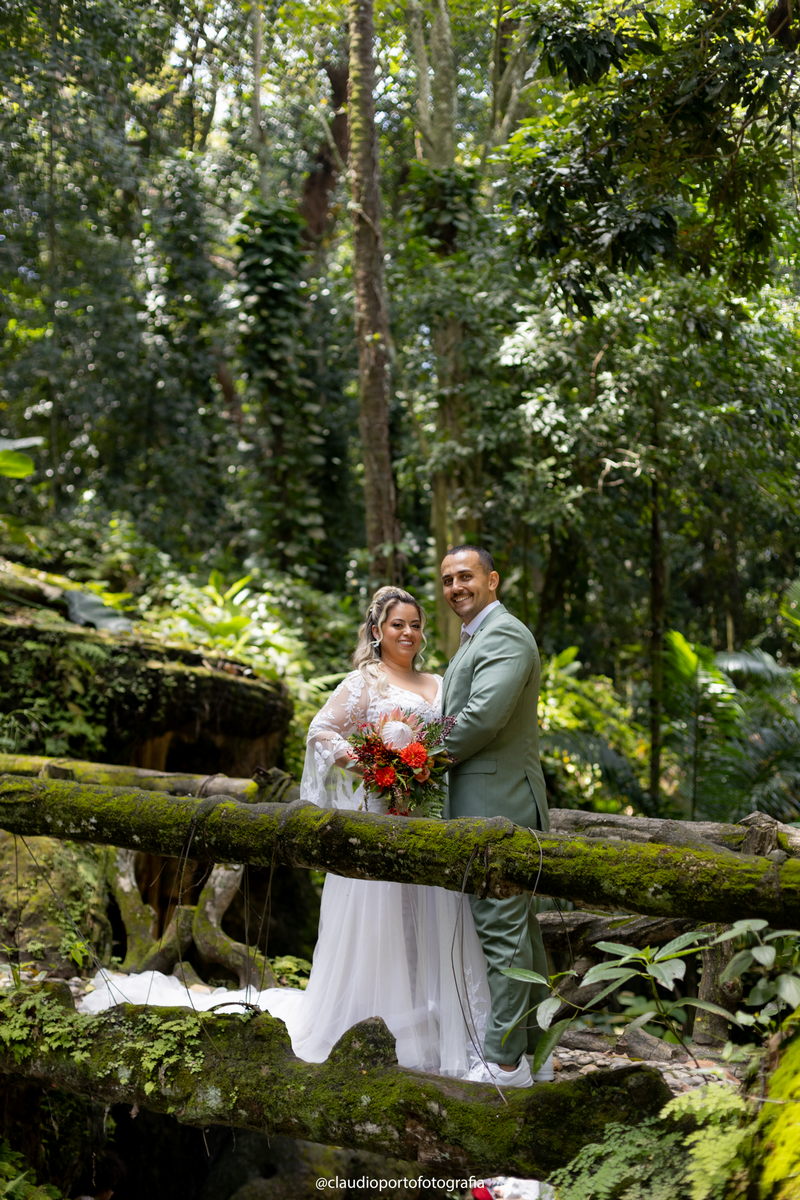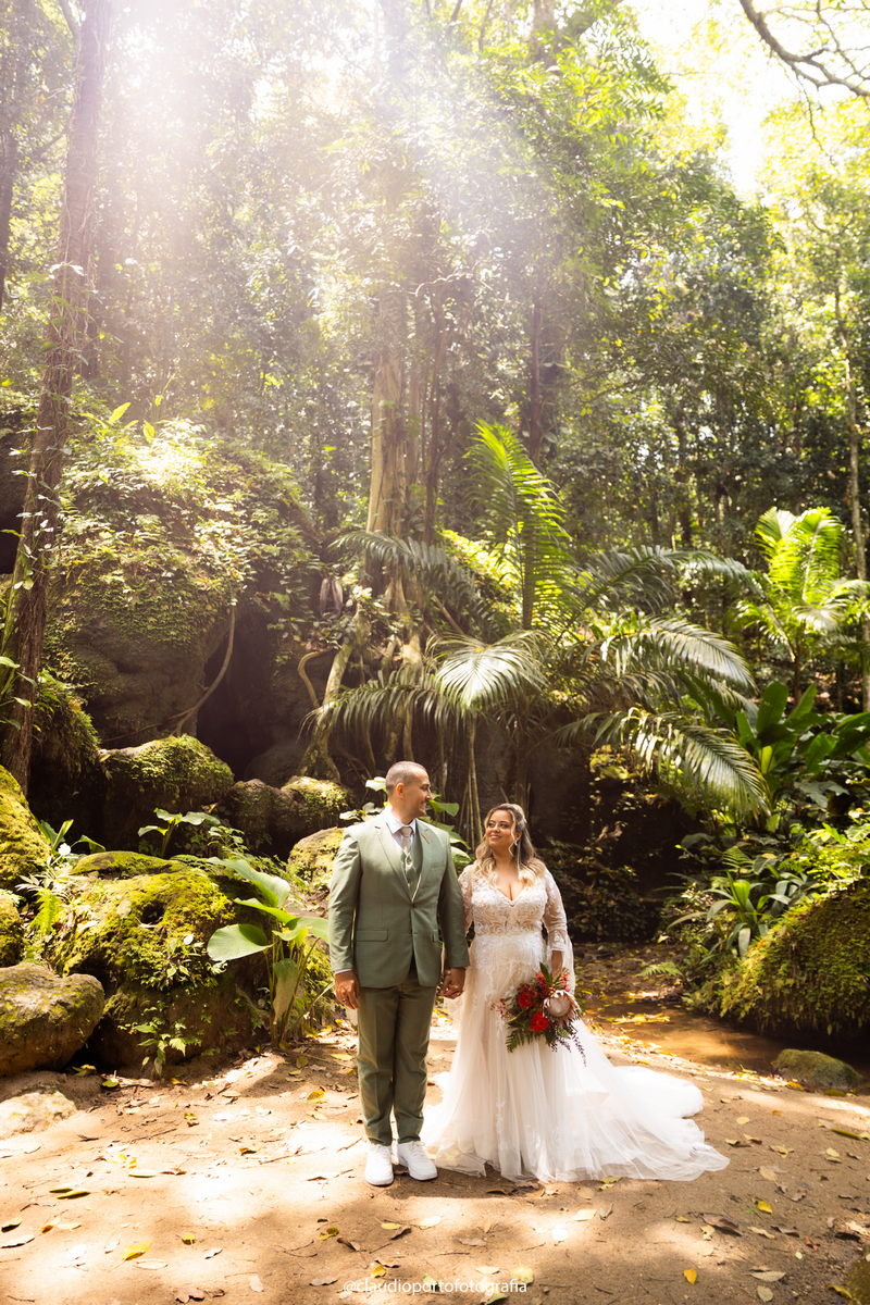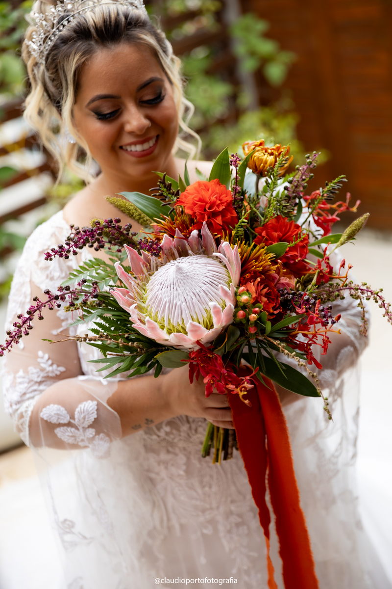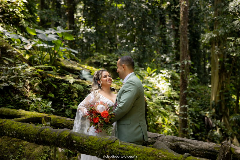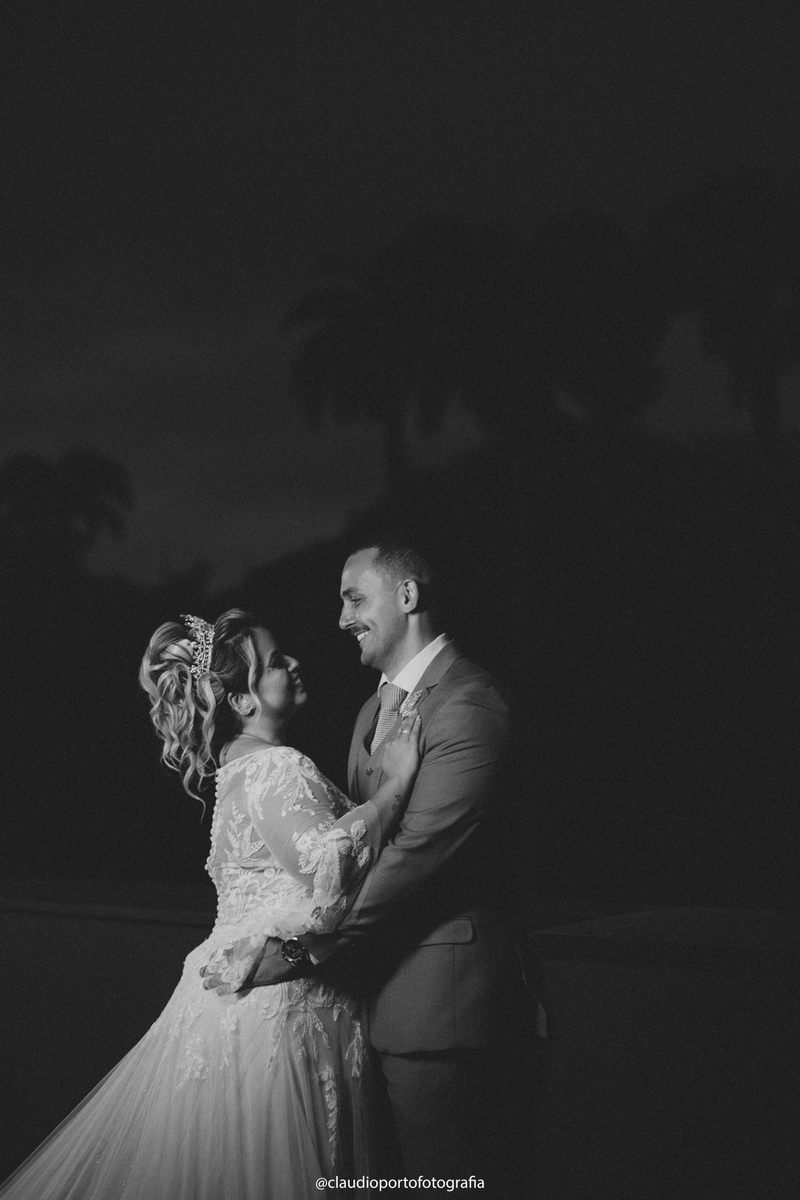 Nos detalhes, uma tiara de cristais realça o penteado preso e depois, a noiva opta por um penteado semipreso para os retratos ao ar livre. A maquiagem assinada por @marcellymenendes trouxe um visual marcante, com olhar estruturado, intensidade nos olhos e pele luminosa que se manteve impecável do início ao fim. Os registros de @claudioportofotografia foram rápidos, precisos e sensíveis, perfeitos para retratar cada momento do dia.