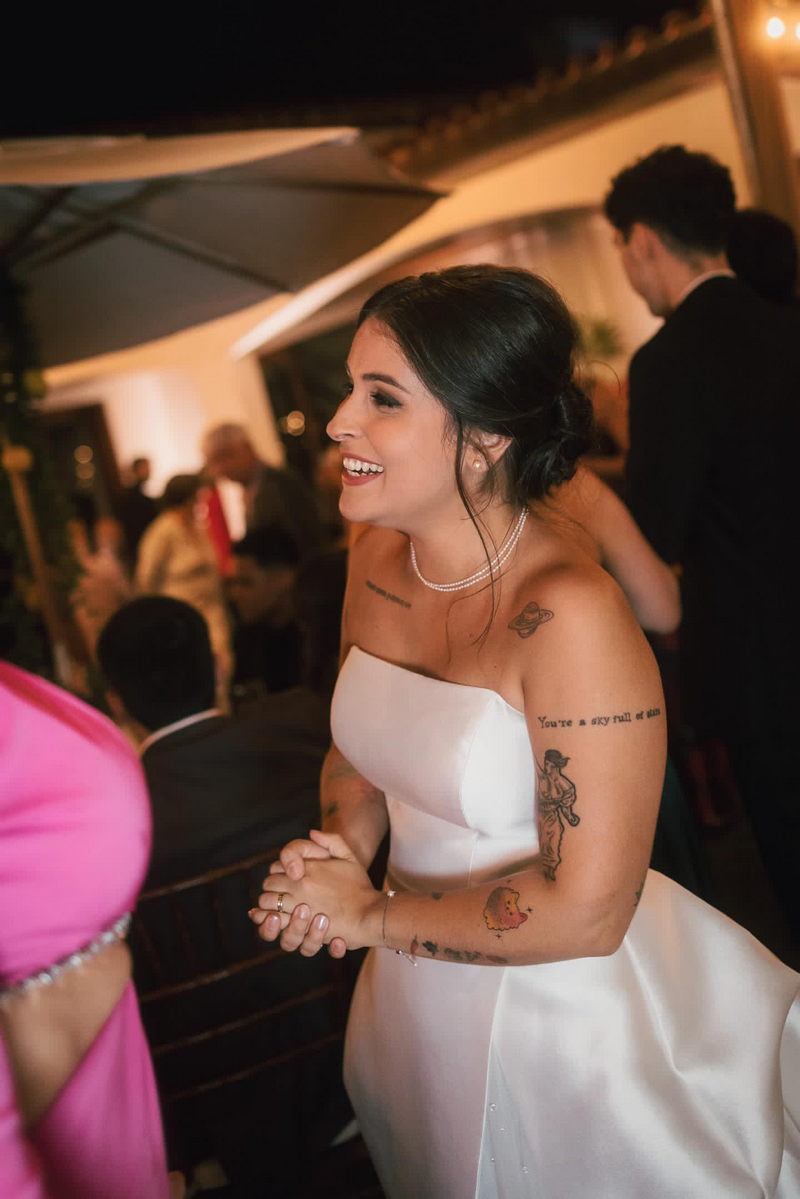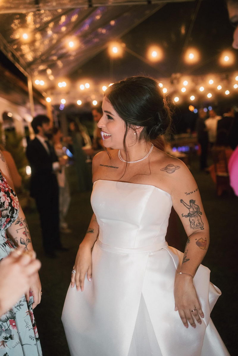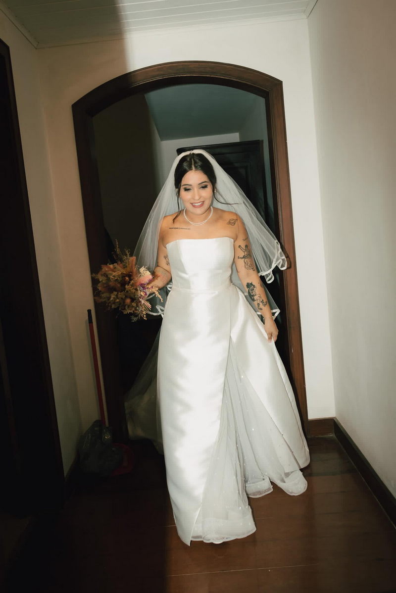 O grande destaque da cerimônia foi, sem dúvida, a querida Júlia, com o seu vestido de noiva assinado pela renomada loja La Modelista. O belíssimo modelo capturou a essência da noiva com elegância e modernidade. O vestido, um verdadeiro sonho em tecido, com perfeito decote tomara-que-caia evidenciou os ombros delicados da noiva. E a saia com seu detalhe surpreendente, a abertura frontal sutil, deu o toque final dessa peça maravilhosa.