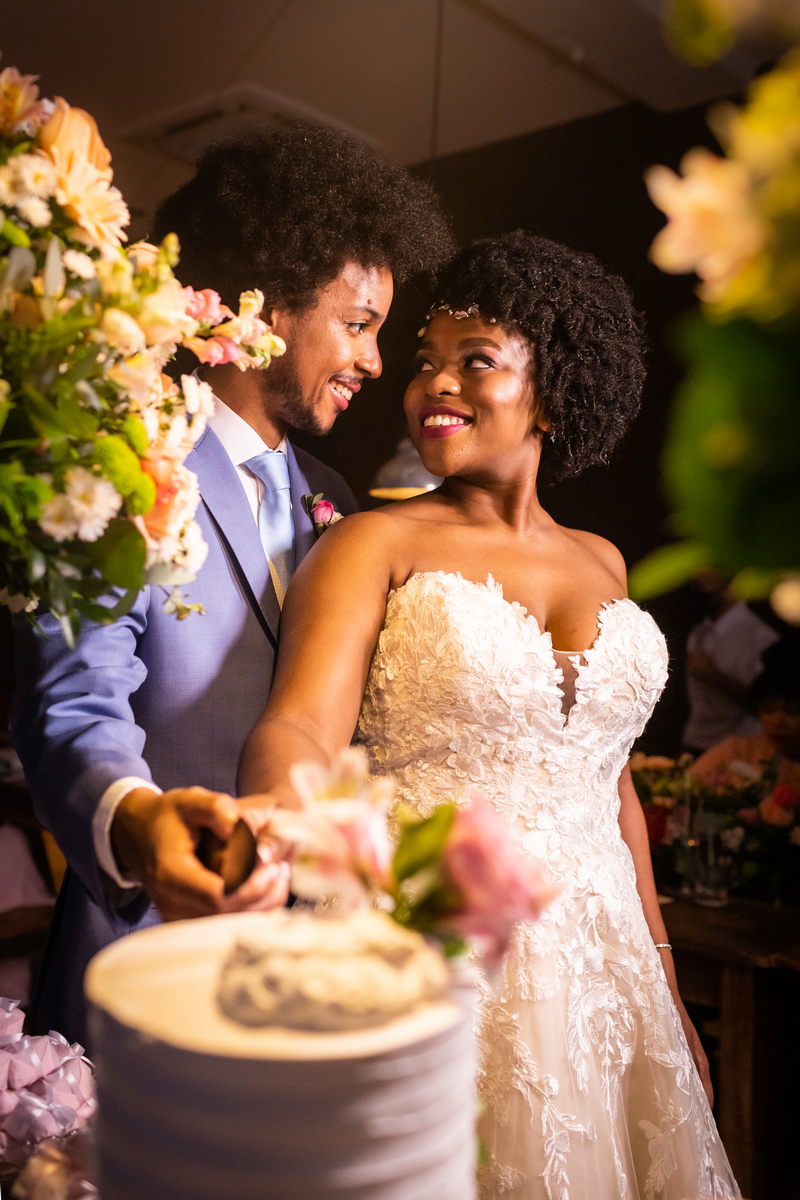 Kizzy estava uma verdadeira princesa, com um vestido de noiva “tomara que caia” da La Modelista, todo trabalhado em renda diferenciada e com uma cauda belíssima. Um modelo que destacou a sua grande beleza e deu ainda mais vida ao seu look inesquecível. Amamos tudo!