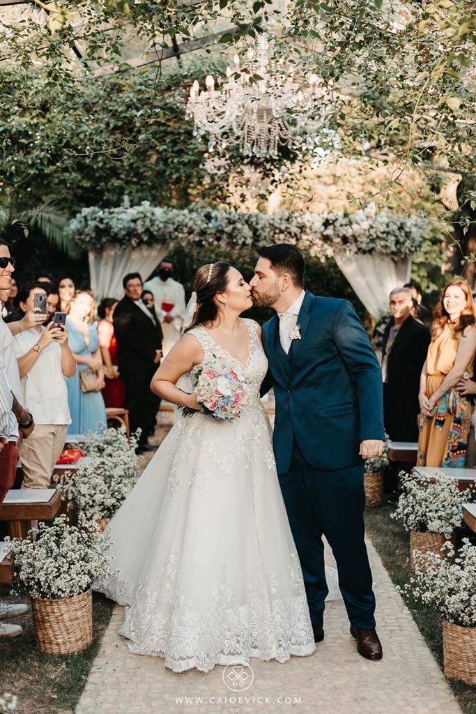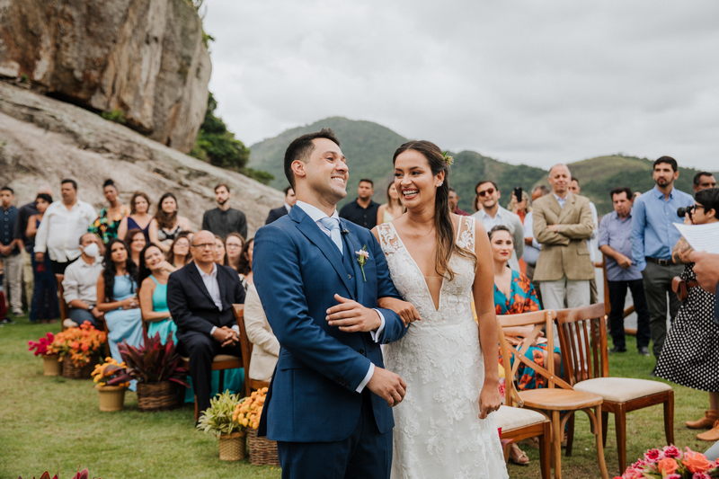 Um casamento ao ar livre durante o dia marcado por muitos detalhes, sentimentos e uma vista inesquecível. Assim foi a cerimônia perfeita do casal Larissa