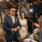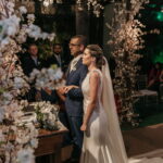 Durante a cerimônia, as palavras de compromisso e os votos de amor são compartilhados, emocionando a todos os presentes. É um momento de profunda conexão, em que as promessas são feitas e as alianças são trocadas, simbolizando a união eterna entre duas almas apaixonadas.