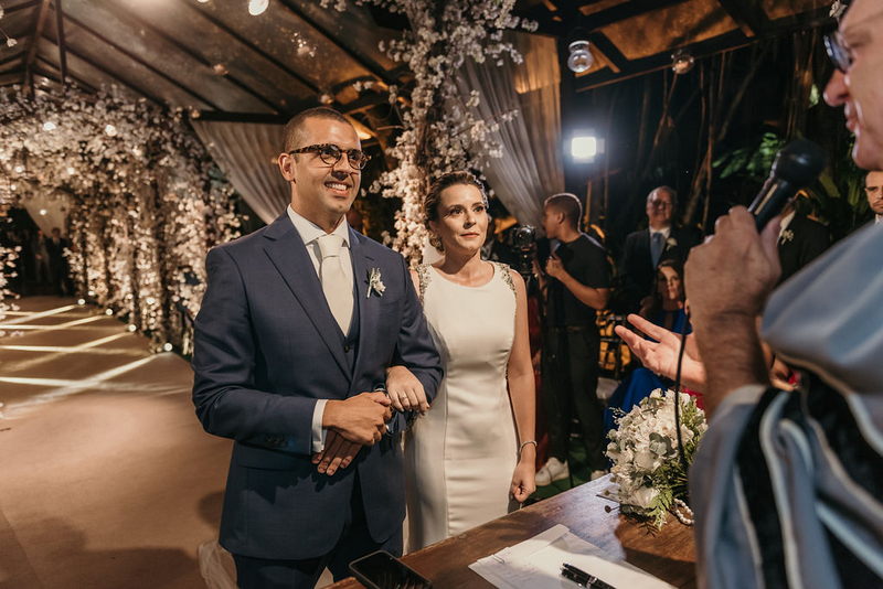 Durante a cerimônia, as palavras de compromisso e os votos de amor são compartilhados, emocionando a todos os presentes. É um momento de profunda conexão, em que as promessas são feitas e as alianças são trocadas, simbolizando a união eterna entre duas almas apaixonadas.