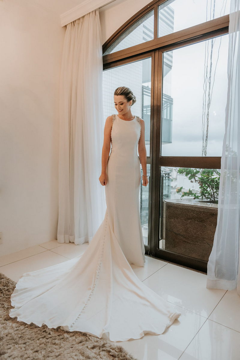 Sabemos que a escolha do vestido de noiva é um processo emocionante e cheio de expectativas. Requer tempo, dedicação e paciência, mas no final, quando a noiva encontra o vestido perfeito, todo o esforço vale a pena. A Isa se casou com um vestido de noiva La Modelista, um modelo deslumbrante, com uma pegada mais minimalista, super elegante, com um lindo decote nas costas e detalhe diferenciado nas laterais. Ela optou por um penteado moderno e chique que combinou perfeitamente com o look e a maquiagem arrasadora da @catarinagentilemakeup.