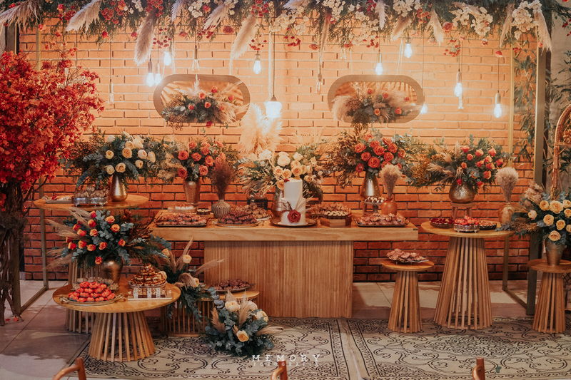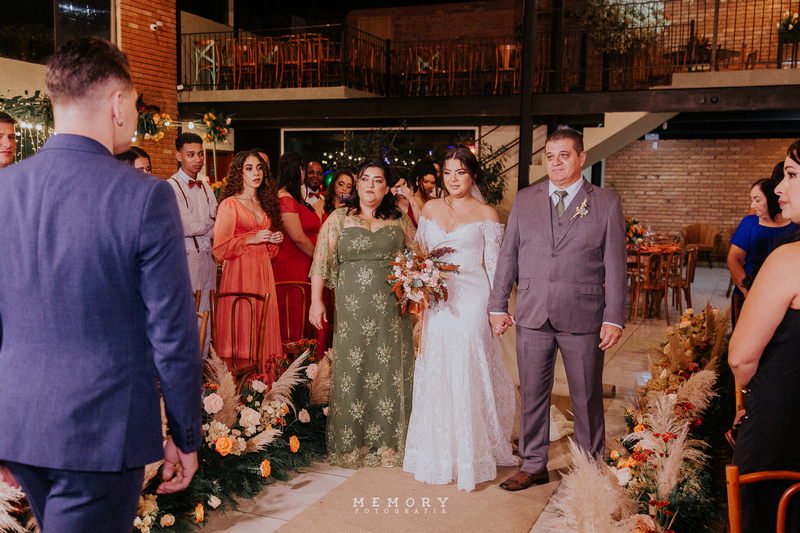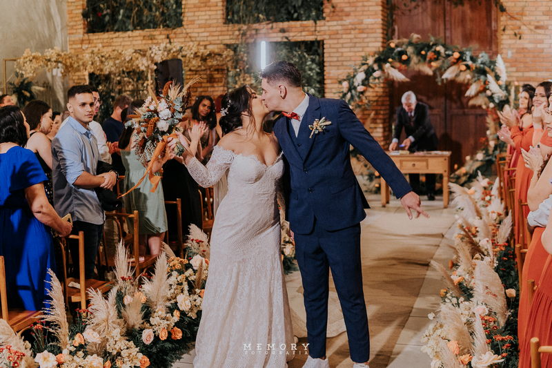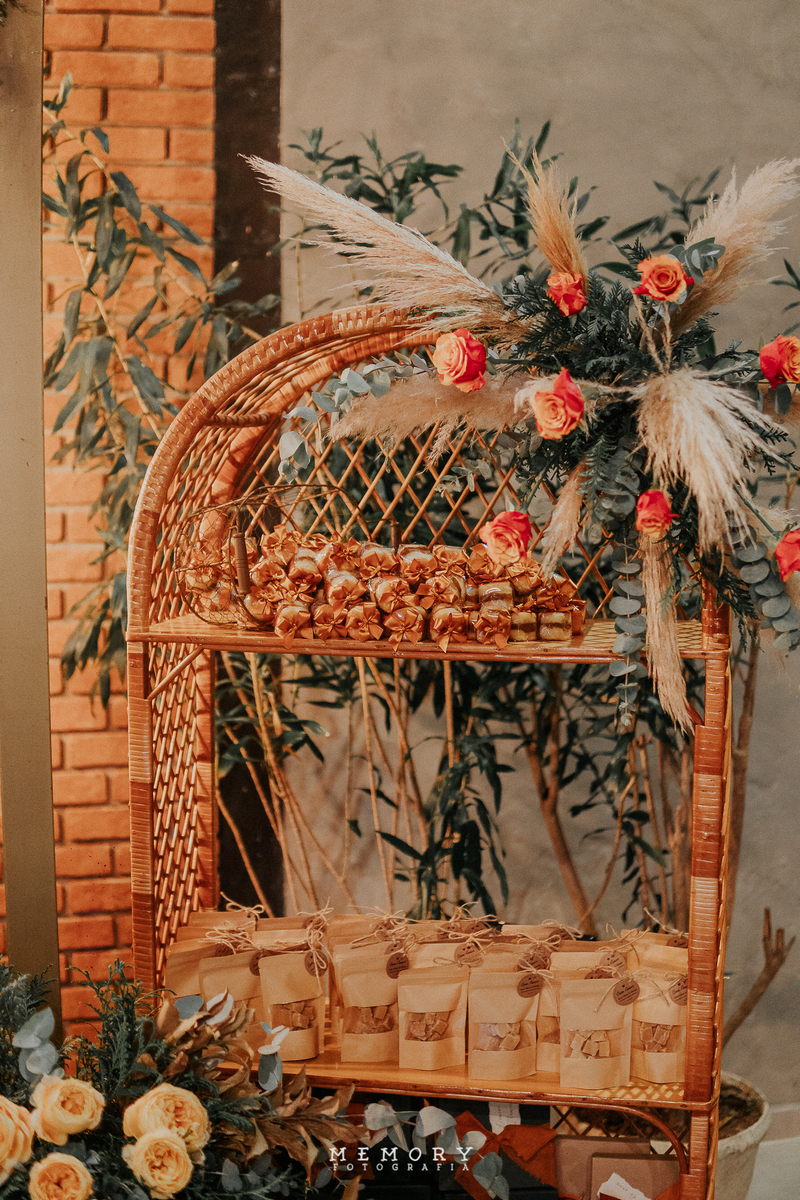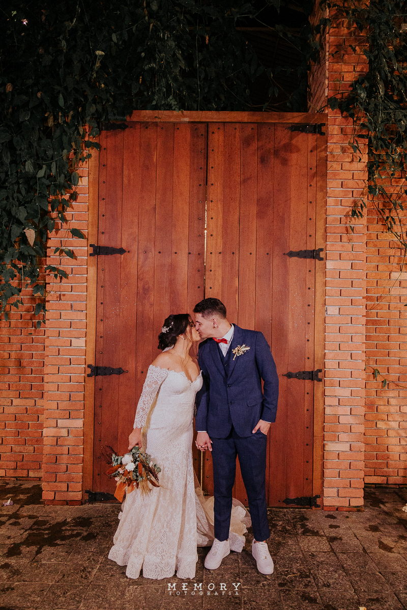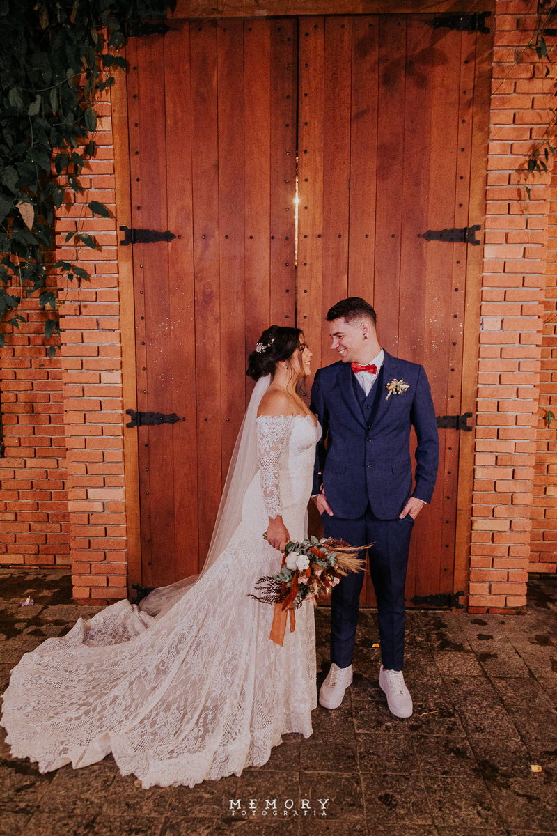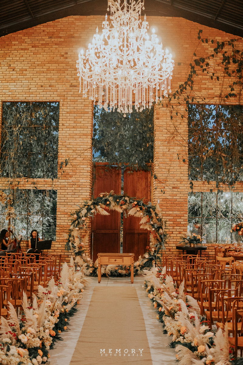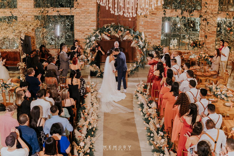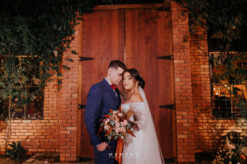 O casal optou por um casamento à noite no Chalé Enfesta. A paleta de cores fez toda a diferença, o ambiente ficou super aconchegante, intimista e romântico ao mesmo tempo. Cada detalhe pensado conforme o gosto do casal, cheio de personalidade!