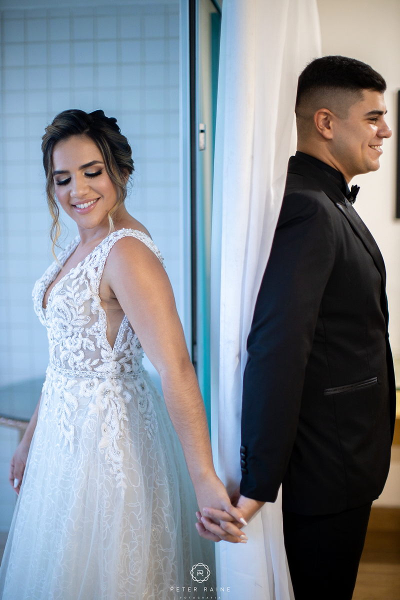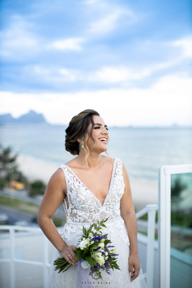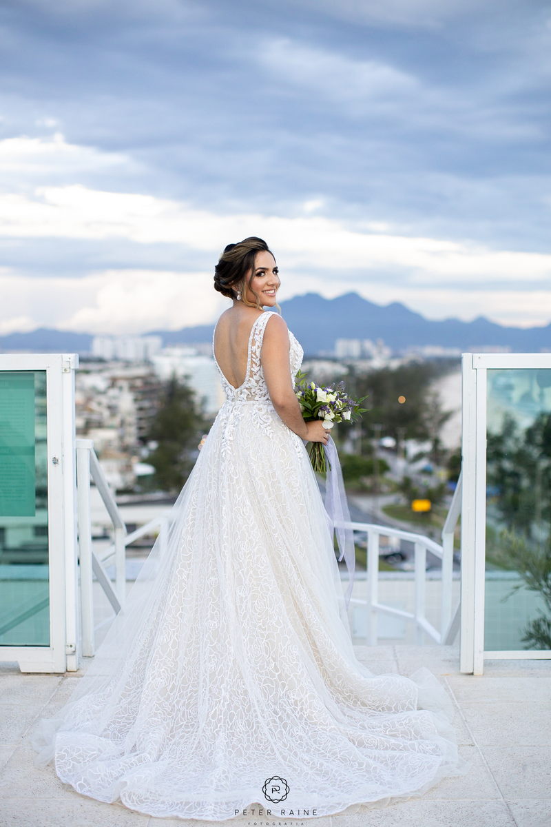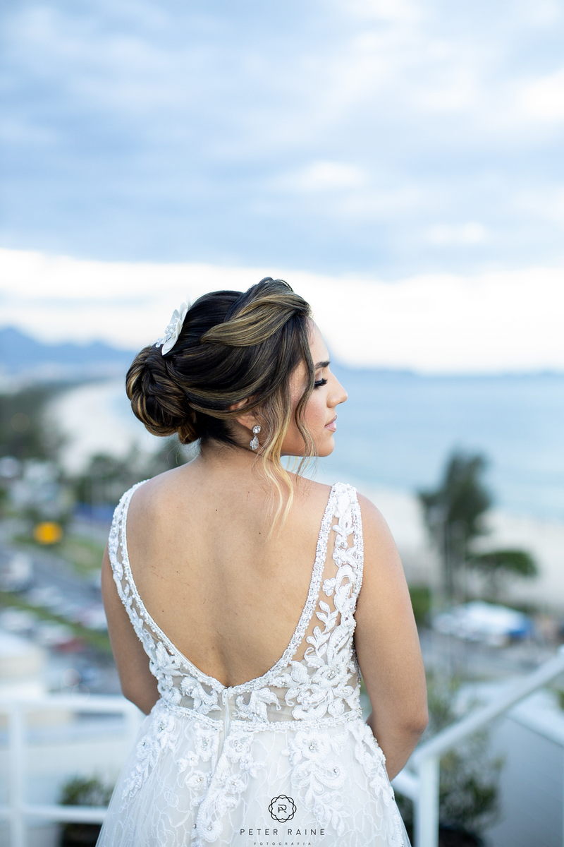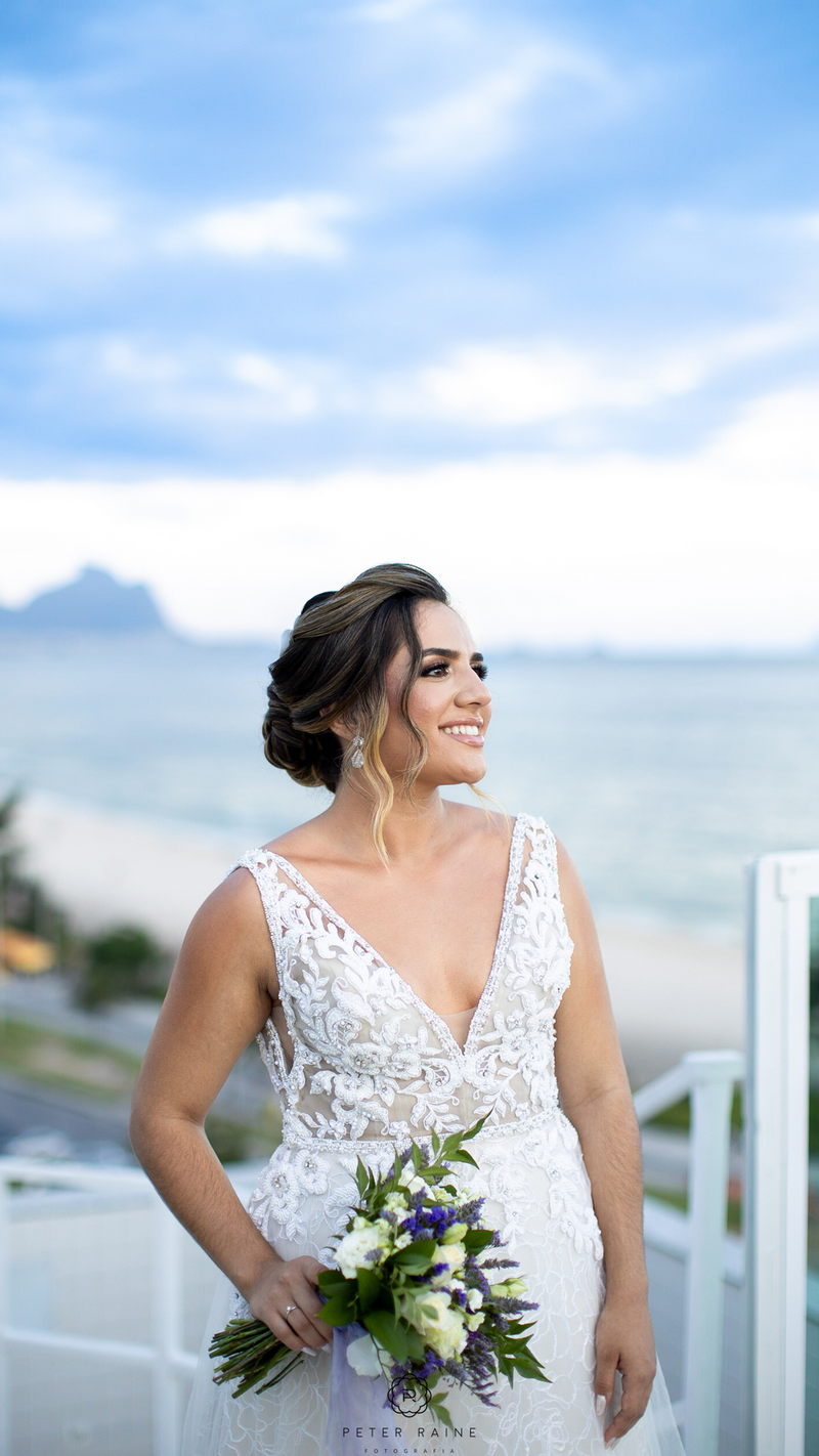 A nossa noiva optou por um vestido de noiva La Modelista super delicado, com lindos detalhes em renda e transparência. E para compor o visual de princesa, caprichou na escolha do penteado e da maquiagem feita pelas mãos mágicas da @flaviaalexandramakeup. Amamos cada detalhe do seu look!