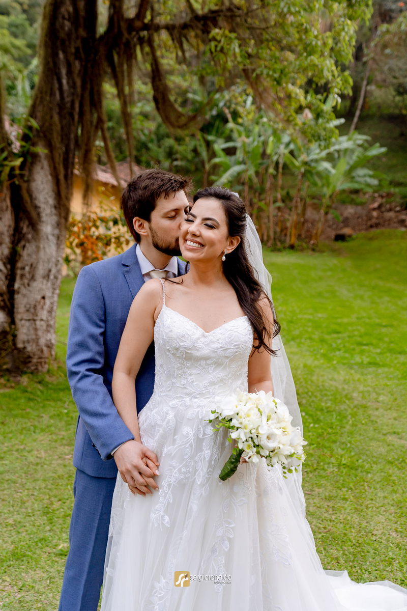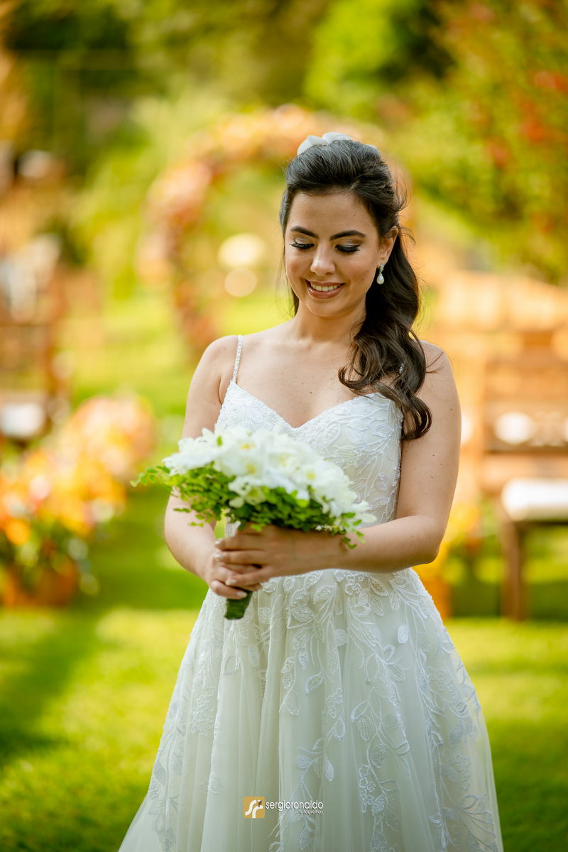 Ela se casou com um modelo La Modelista, com alcinhas delicadas todo trabalho em renda e um caimento perfeito, super romântico e bem leve. O look ficou completo com a escolha do penteado e da maquiagem maravilhosa que realçou ainda mais sua beleza. Ela estava vestida como uma rainha, tudo perfeito!