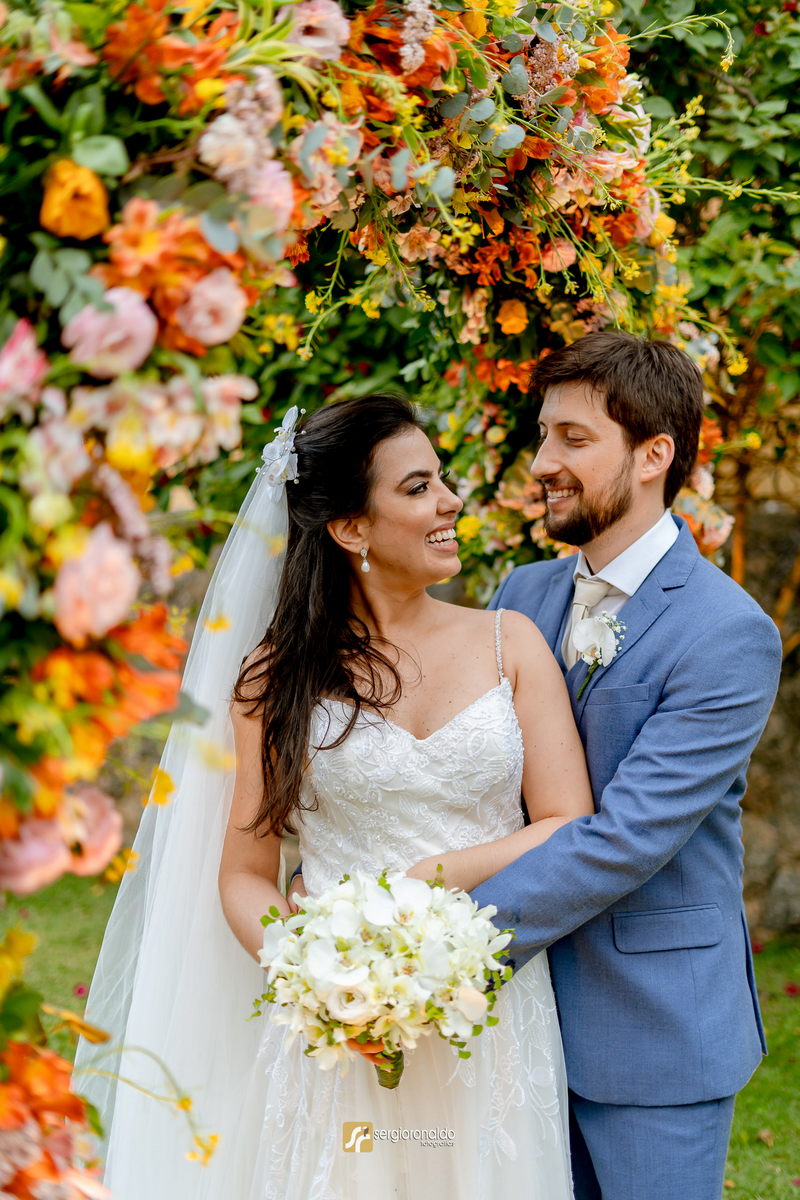A decoração desse casamento ao ar livre foi simplesmente deslumbrante, com flores belíssimas, arco de flores coloridas no altar e um ambiente romântico e aconchegante. Cada detalhe foi cuidadosamente pensado para refletir a personalidade dos noivos, e a mistura de cores suaves com elementos da decoração realçou a beleza natural do local.
