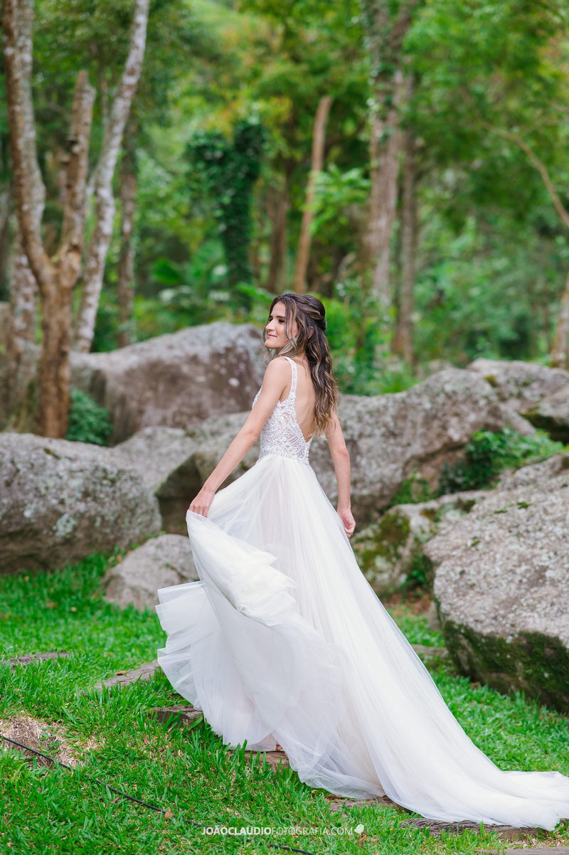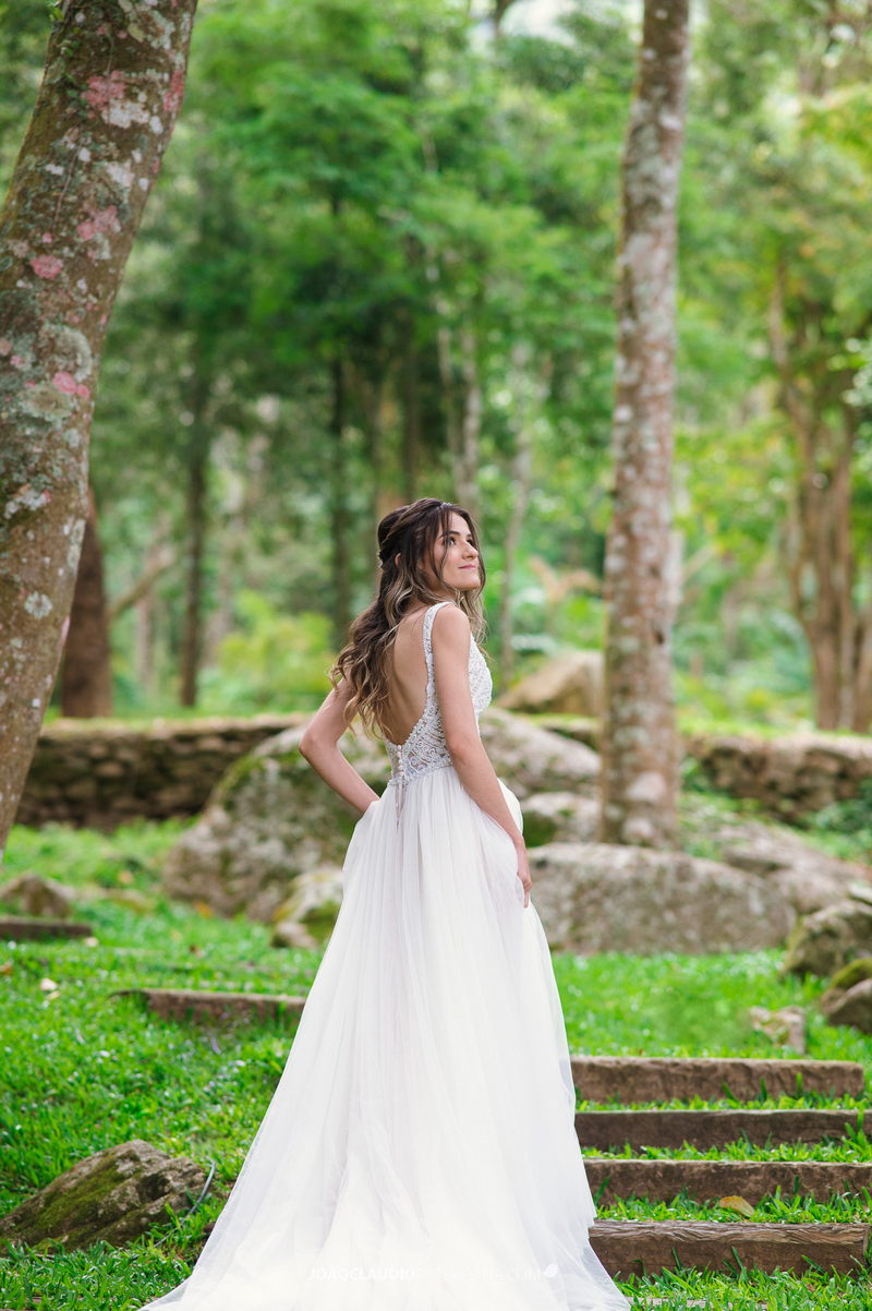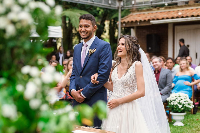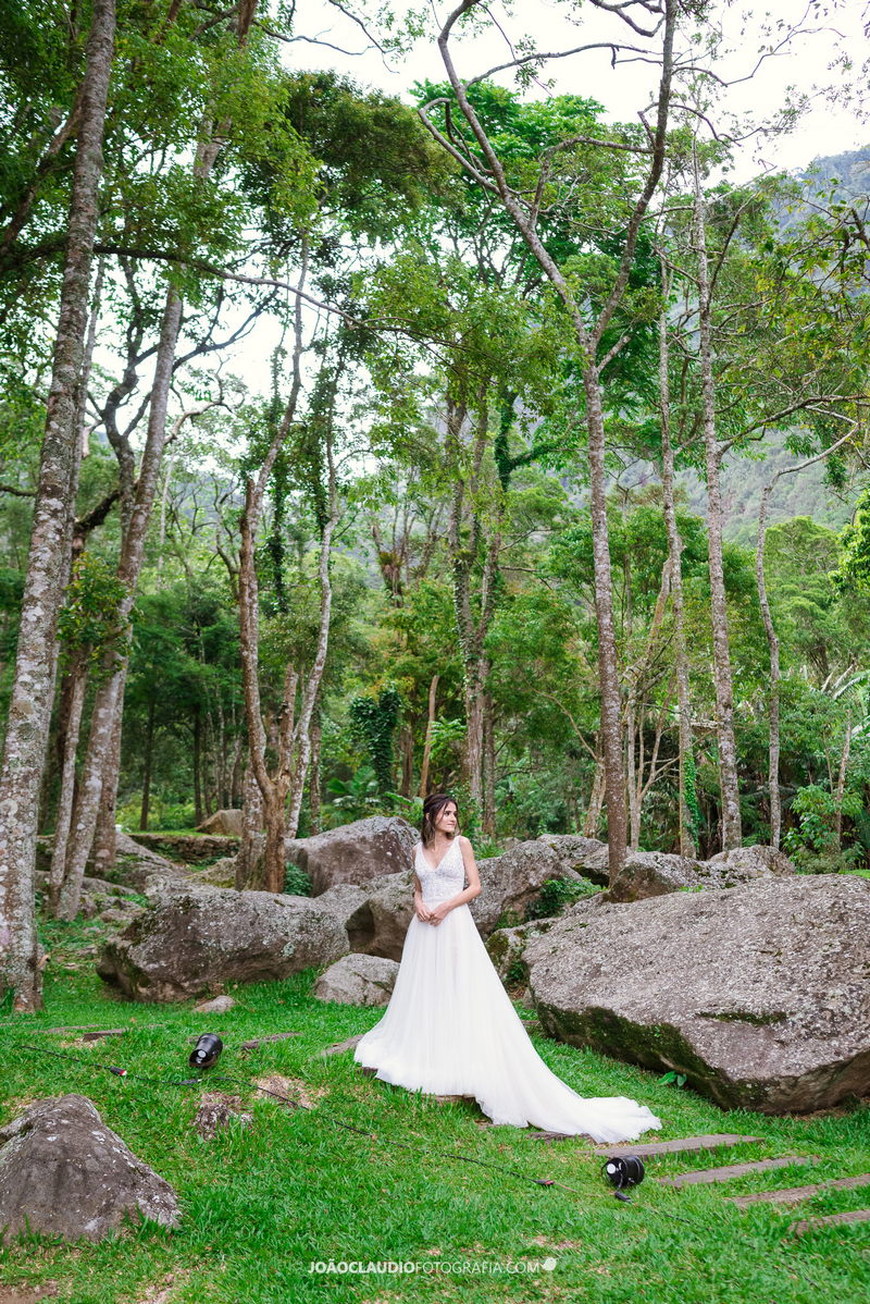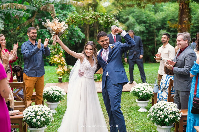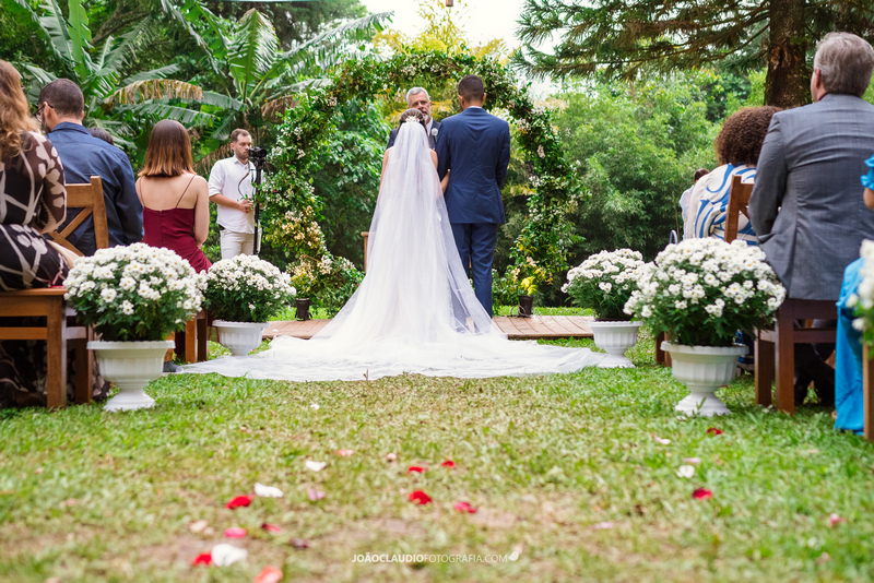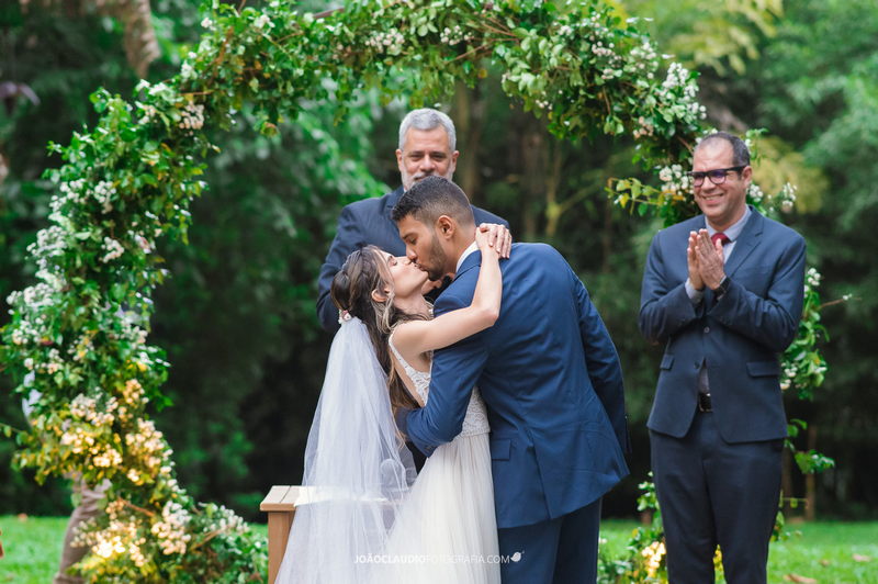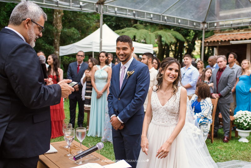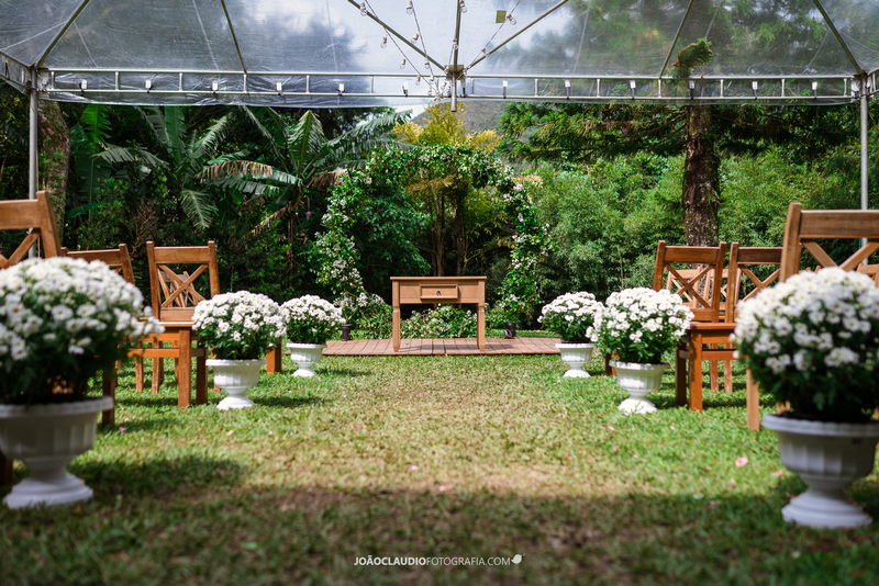 O casal decidiu se casar em uma cerimônia ao ar livre na Casa de Festa Dom Lengruber, em Petrópolis. Um lugar que parecia ter saído de uma novela das nove, simplesmente espetacular!