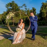A natureza desenhou esse cenário encantador que rendeu as mais lindas fotos de casamento. Os detalhes dessa cerimônia, parece ter saído de um conto de princesa, com muito verde  e uma decoração digna de realeza. Com toda certeza o amor e alegria se fizeram presente em cada pedacinho e momento dessa festa.