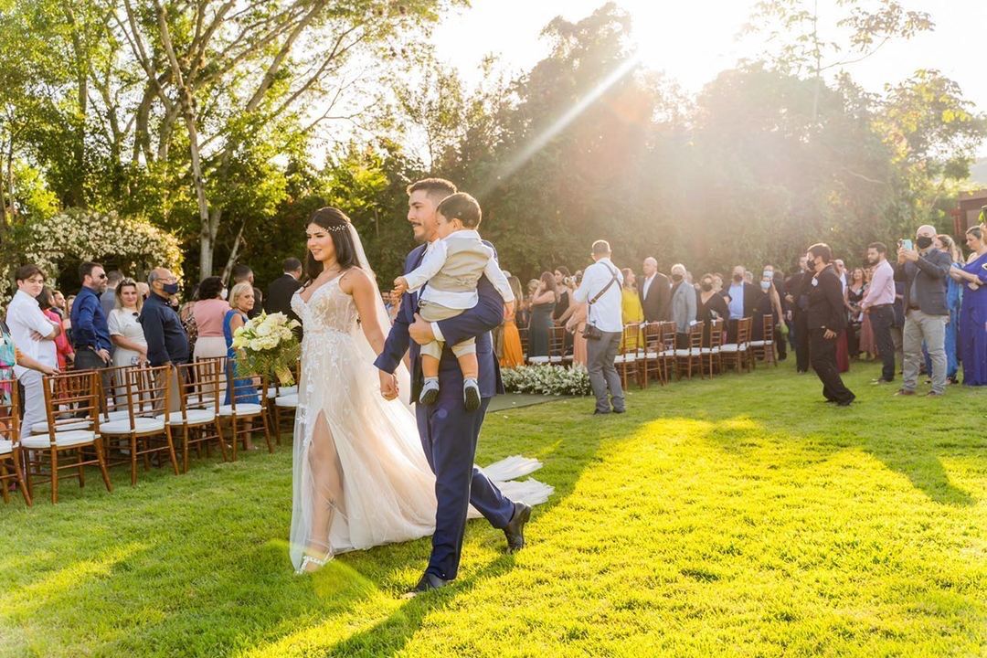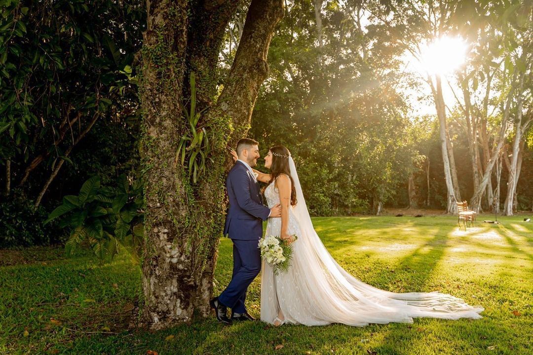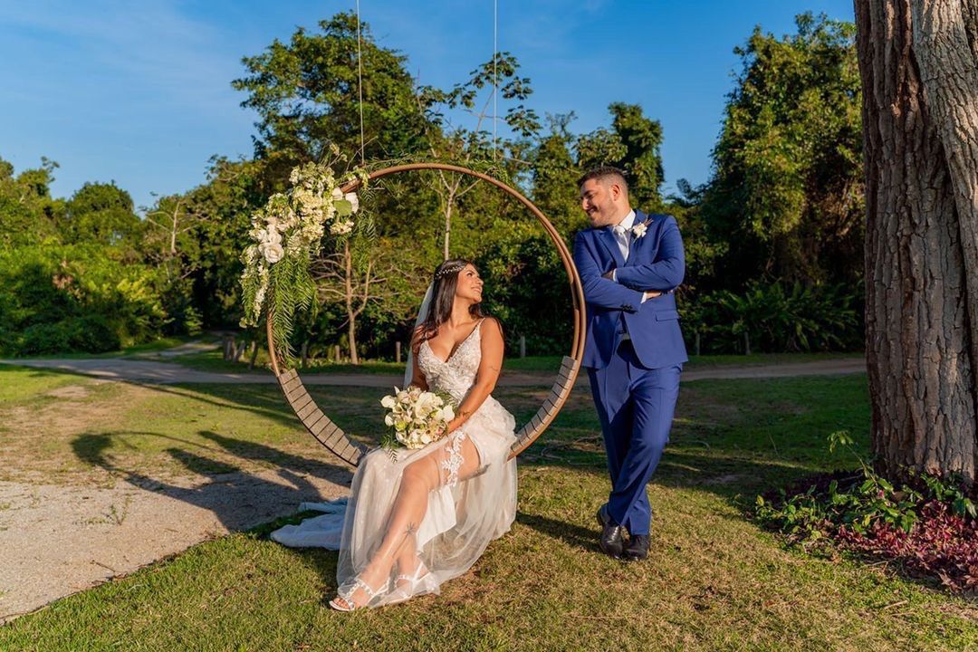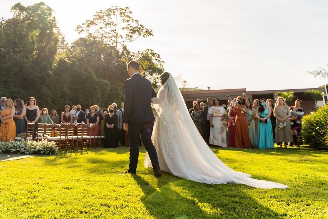 A natureza desenhou esse cenário encantador que rendeu as mais lindas fotos de casamento. Os detalhes dessa cerimônia, parece ter saído de um conto de princesa, com muito verde  e uma decoração digna de realeza. Com toda certeza o amor e alegria se fizeram presente em cada pedacinho e momento dessa festa.