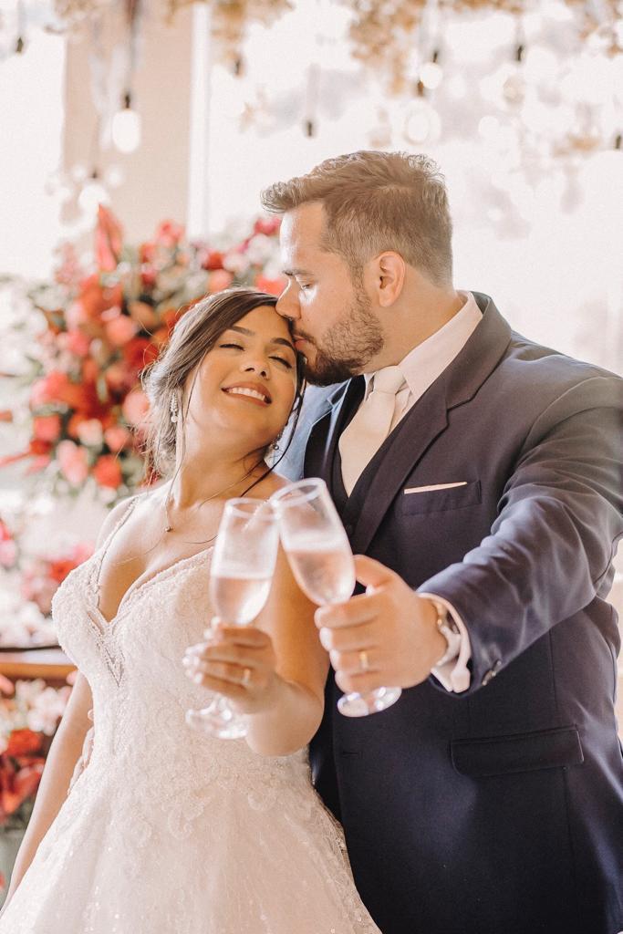A decoração ficou belíssima, formando um cenário perfeito para concretizar o seu grande sonho, de uma união abençoada e contemplada por amigos e parentes que vivenciaram de pertinho cada passo dessa história de amor. E, por falar em algo belíssimo, o que dizer da escolha do vestido?