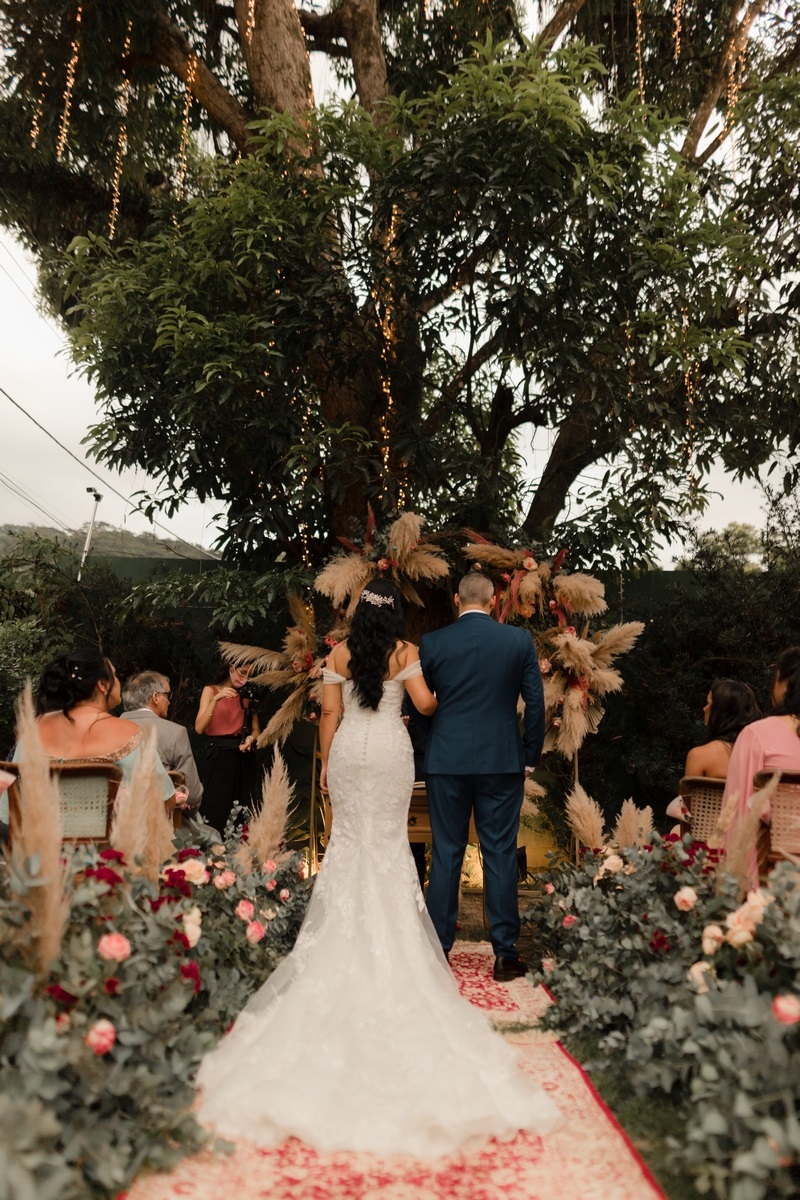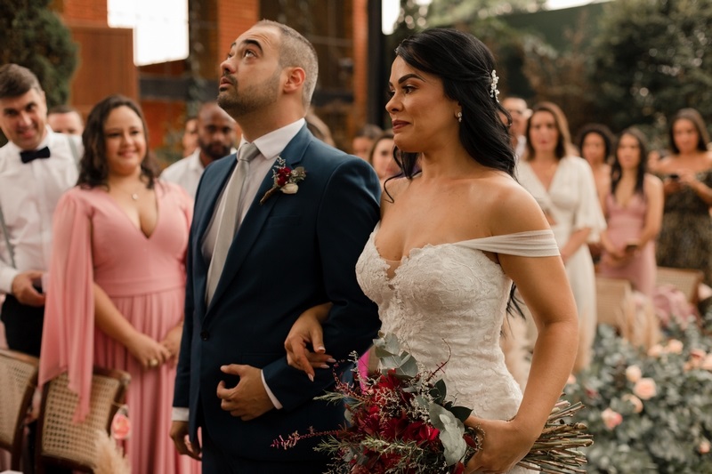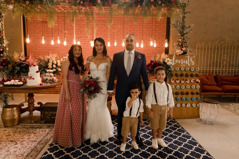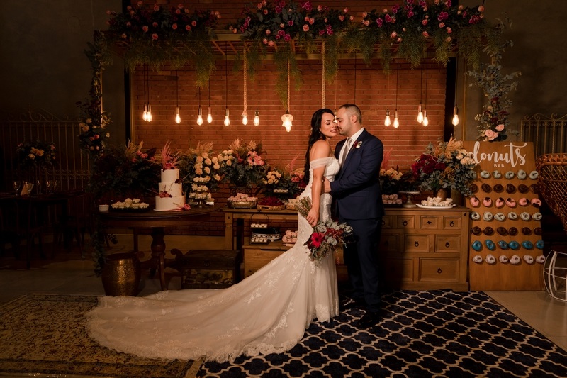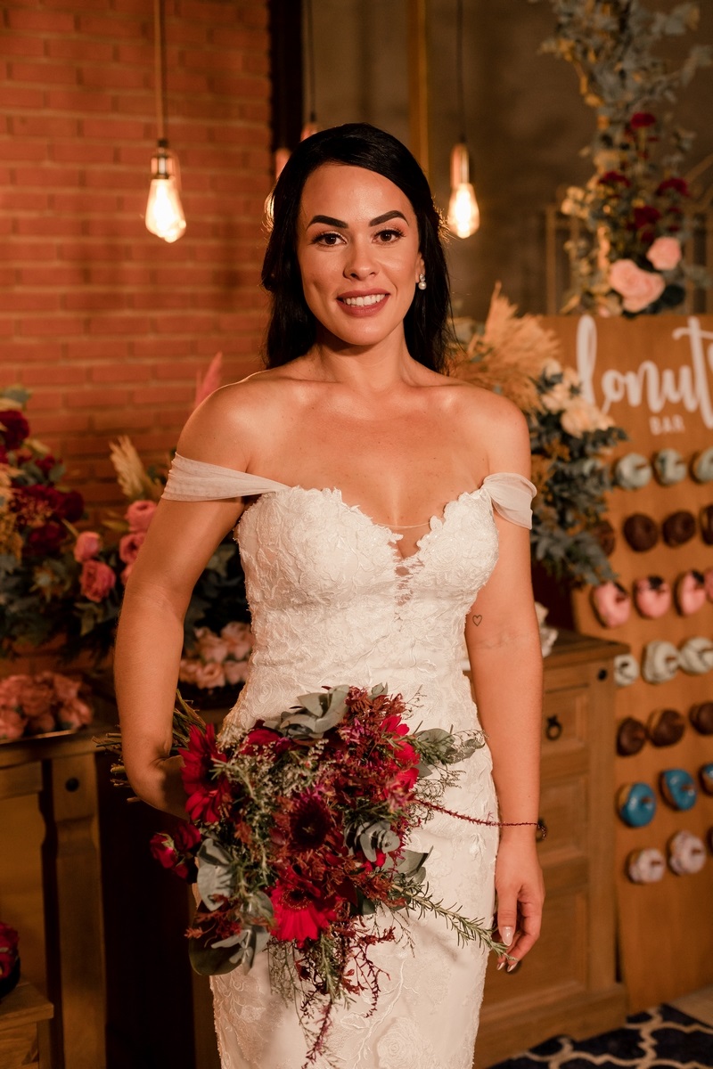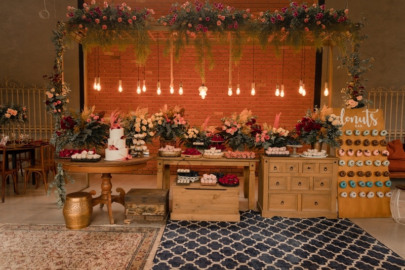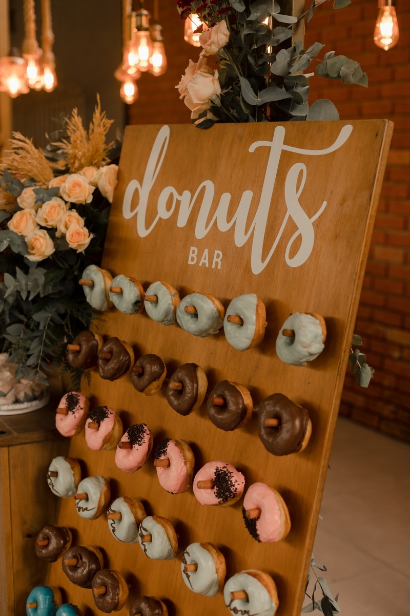 A decoração romântica com um ar de rusticidade deixou a todos encantados, o que dizer do cantinho do Donuts? Super original e que, com certeza, apaixonou os convidados. O ponto alto da cerimônia, sem dúvidas foi a entrada da noiva.