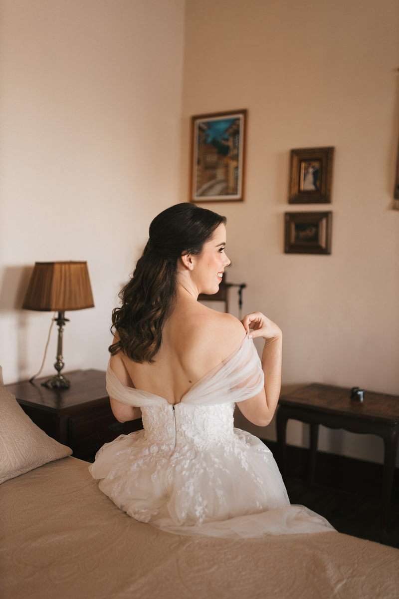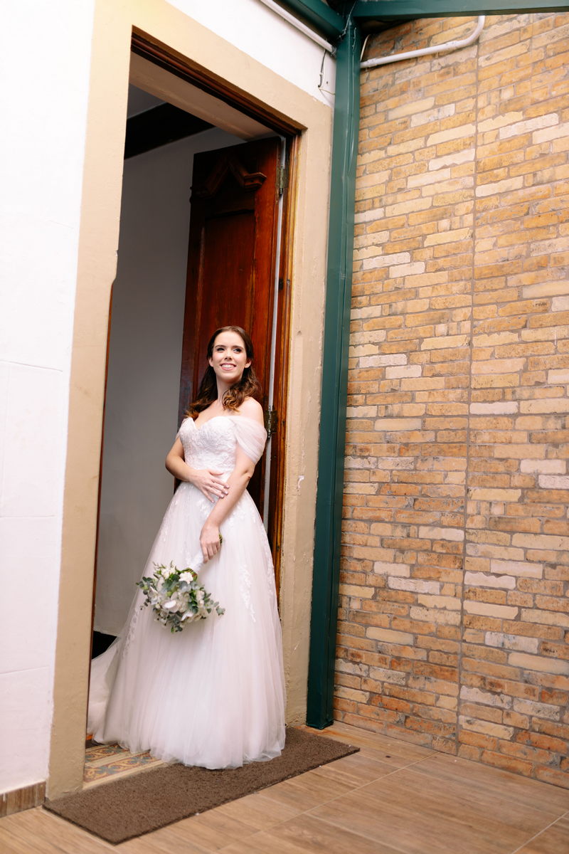 E foi assim com a Isabela, que se casou magnificamente com um vestido La Modelista.  Ela escolheu um modelo com renda e detalhe suaves na saia, super leve e romântico, não poderia ser mais encantador. O decote delicado e os ombros à mostra transmitiram uma feminilidade graciosa, enquanto a cintura marcada destacou a sua  silhueta de forma encantadora.
