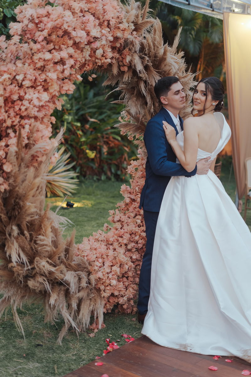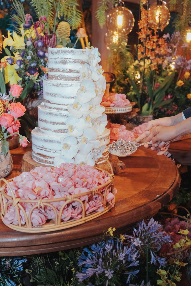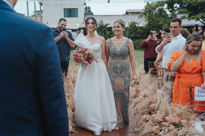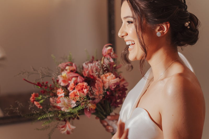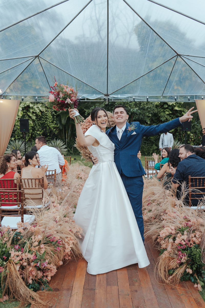 Cada cantinho da festa ficou perfeito, mas temos certeza que o que mais destacou em todo casamento foi a beleza da Fernanda. O vestido de noiva La modelista minimalista com uma manga super diferenciada, trouxe uma elegância única ao look, e combinou perfeitamente com o penteado e maquiagem, sem falar no buquê maravilhoso.