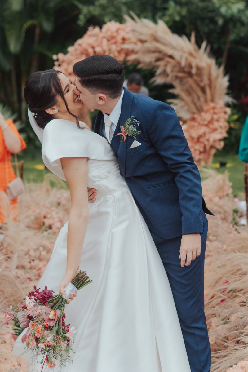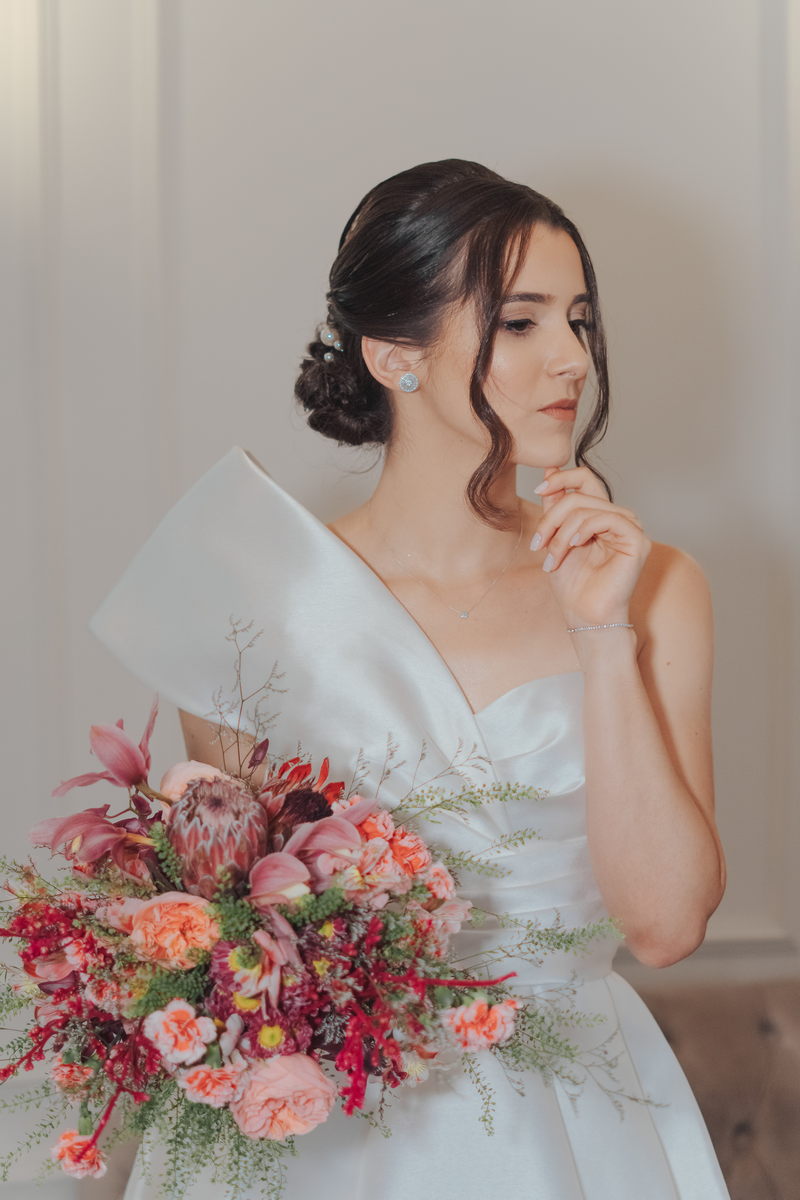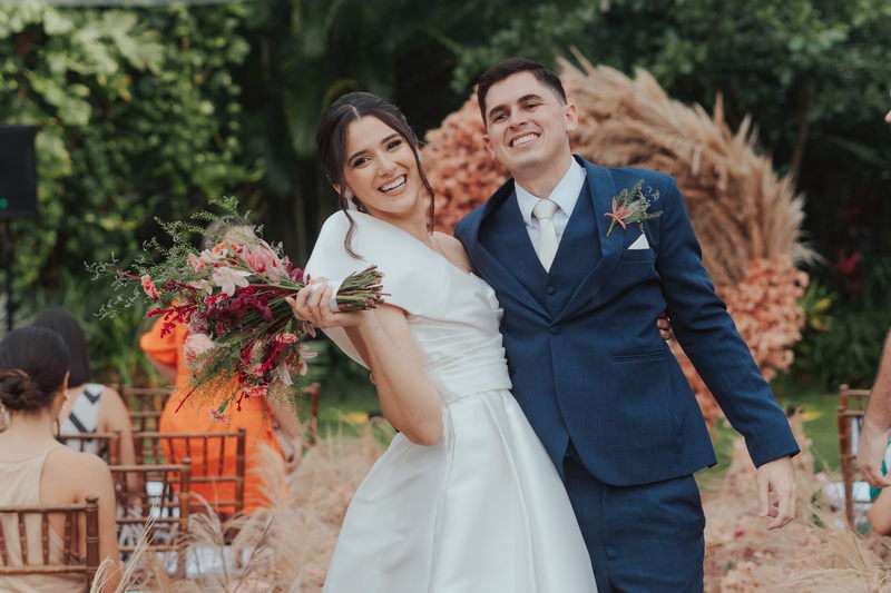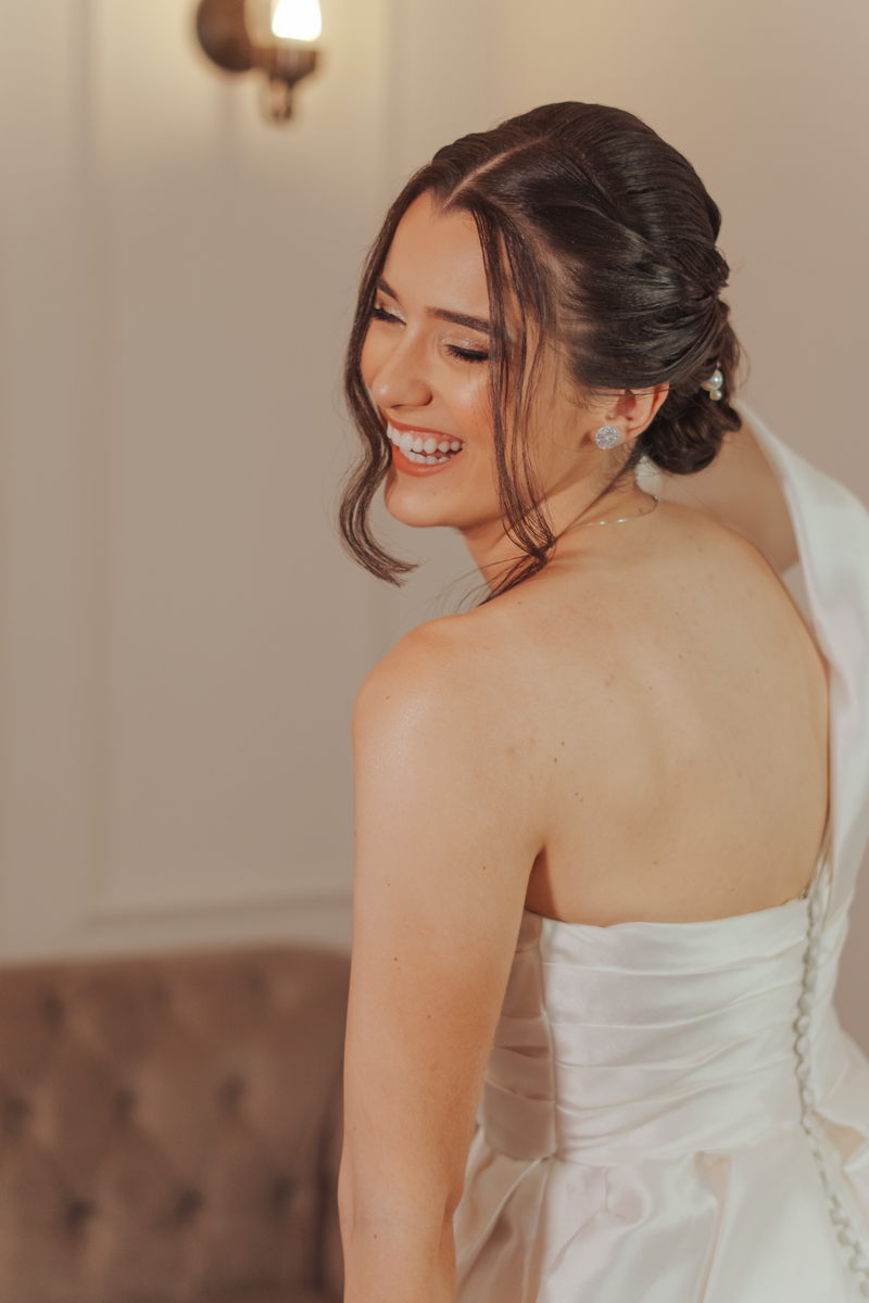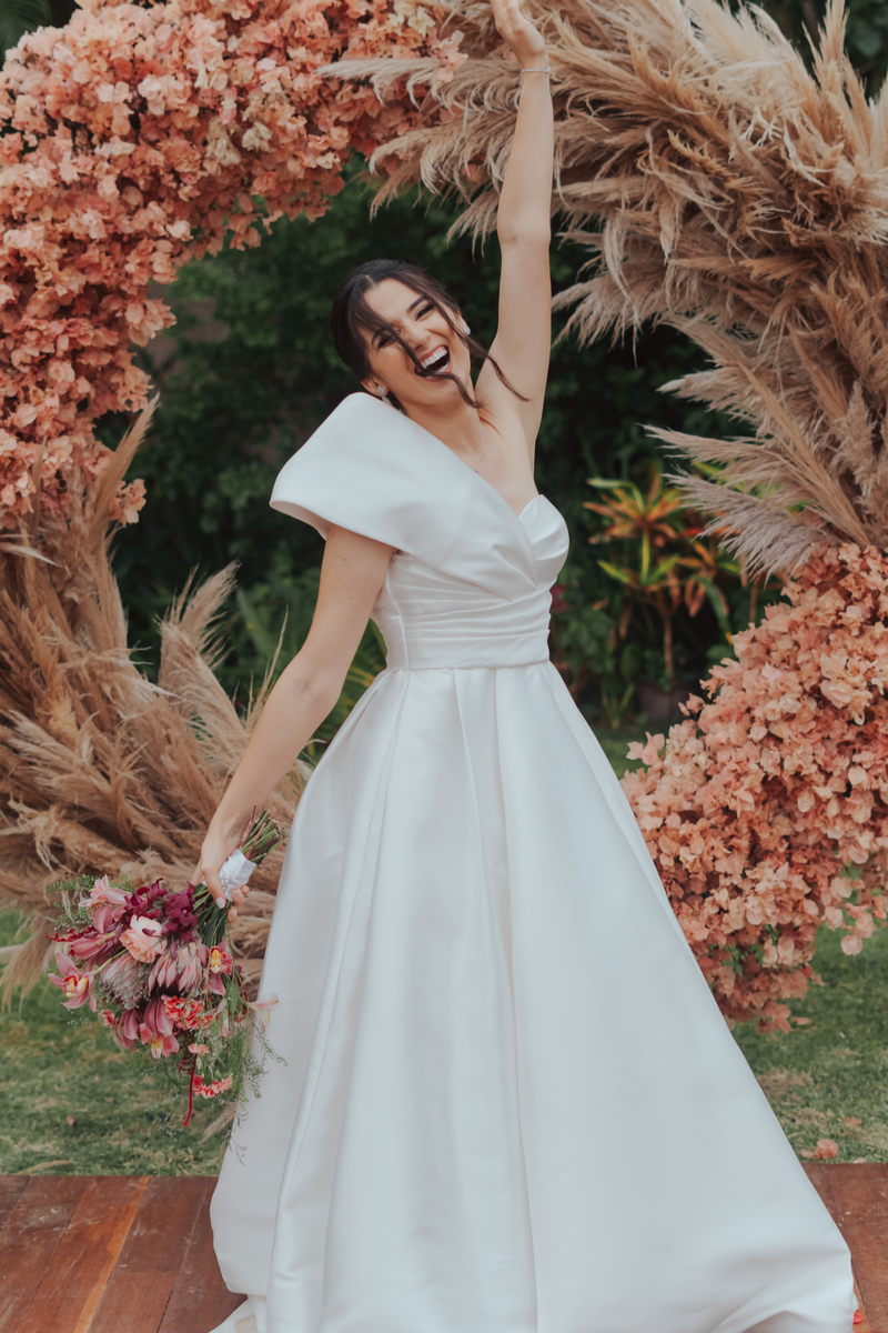 Cada cantinho da festa ficou perfeito, mas temos certeza que o que mais destacou em todo casamento foi a beleza da Fernanda. O vestido de noiva La modelista minimalista com uma manga super diferenciada, trouxe uma elegância única ao look, e combinou perfeitamente com o penteado e maquiagem, sem falar no buquê maravilhoso.