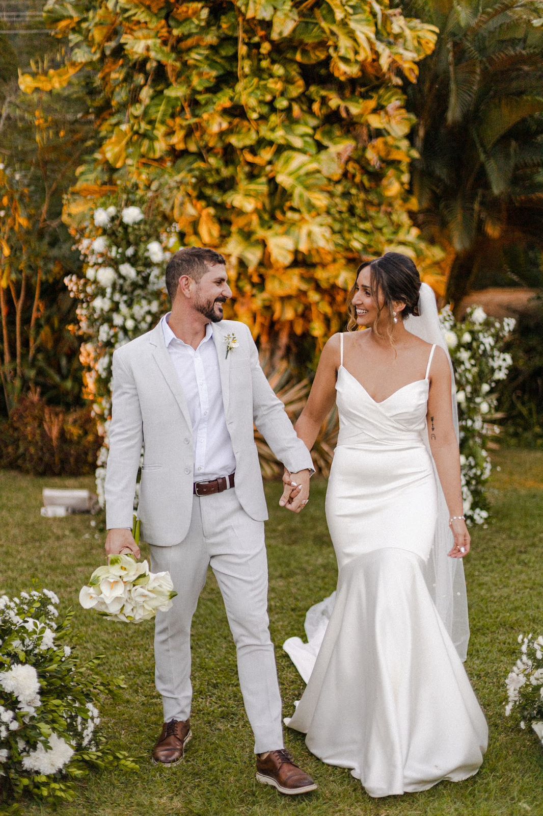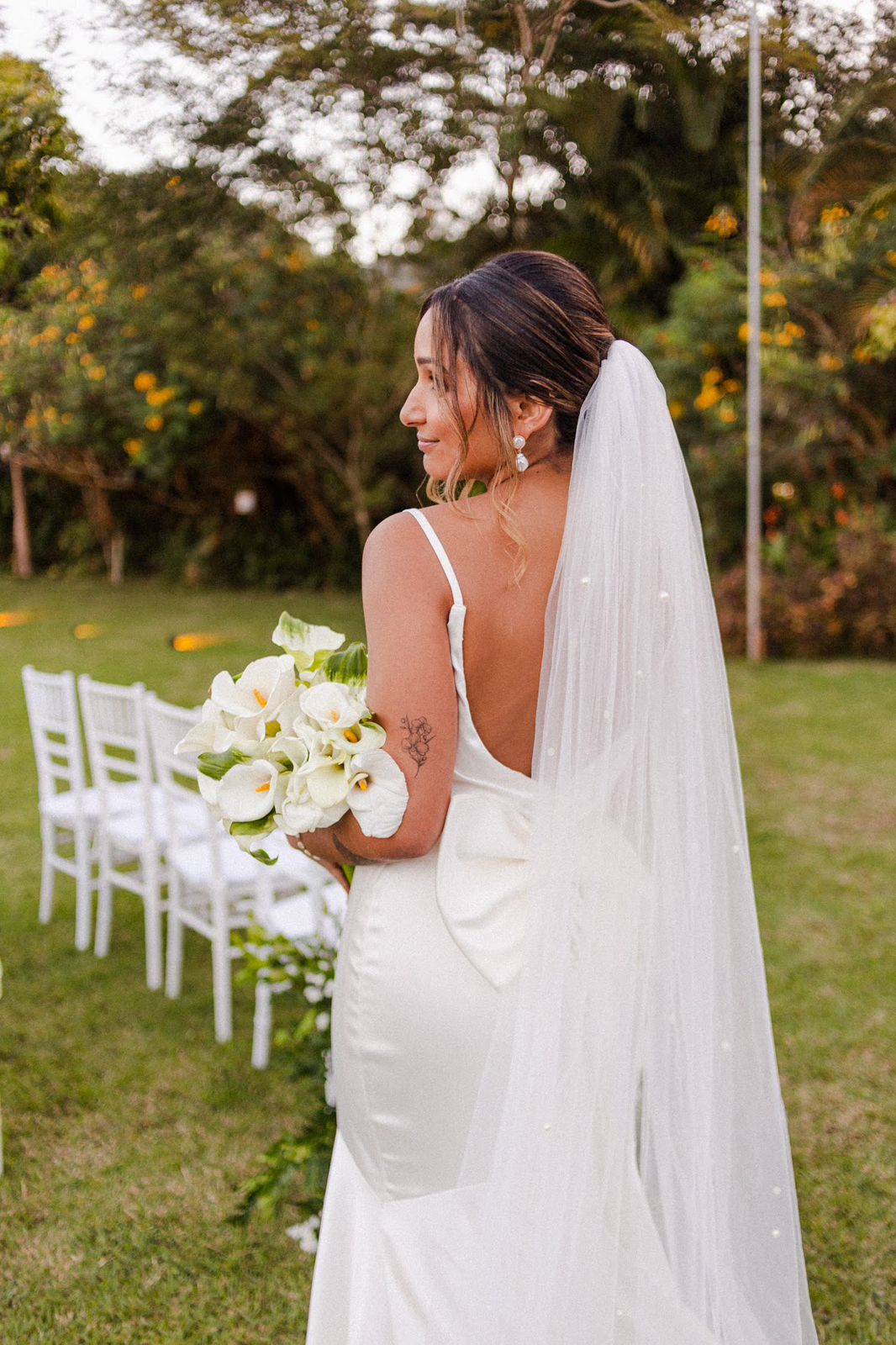 O casal Mariana e Kaian optou por um casamento ao Ar Livre no Espaço GR, onde cada detalhe foi pensado com amor e muito bom gosto. Começando pelo vestido de noiva que foi um verdadeiro espetáculo, como não se apaixonar? Um modelo da La Modelista estilo sereia minimalista, com laço estonteante nas costas e um caimento que realçou ainda mais suas curvas. A Mariana não poderia ter feito melhor escolha!