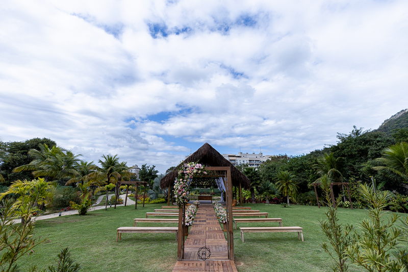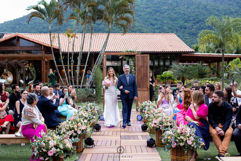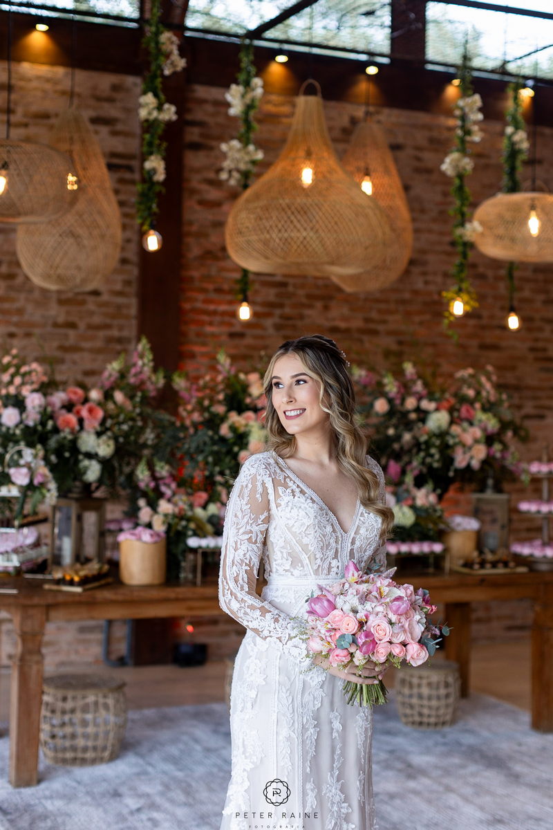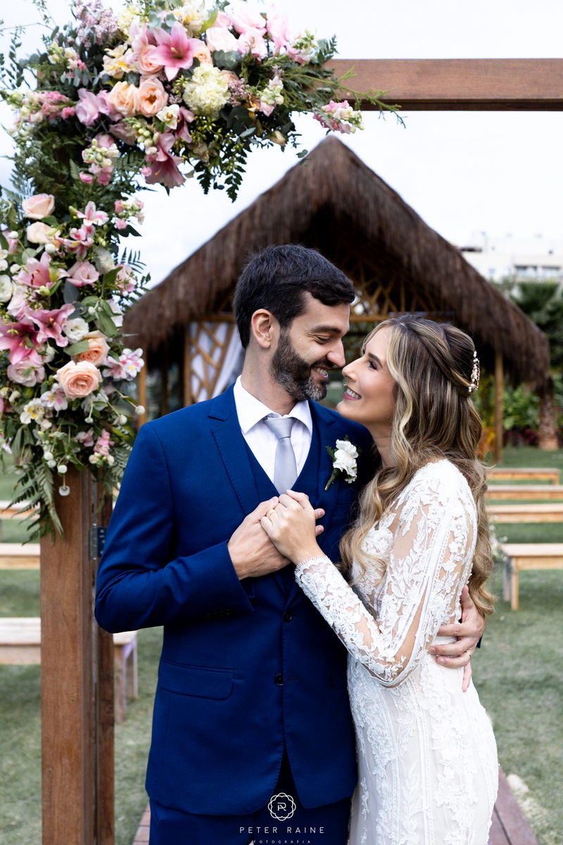 A decoração estava impecável, com arranjos de flores naturais que complementavam a beleza natural do local. A paleta de cores escolhida pelo casal, trouxe uma sensação de frescor e harmonia ao ambiente. Um casamento mais que inspirador!
