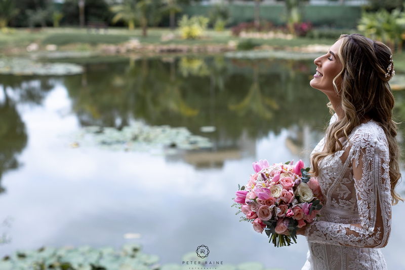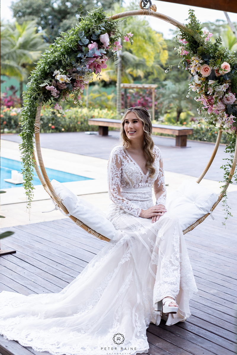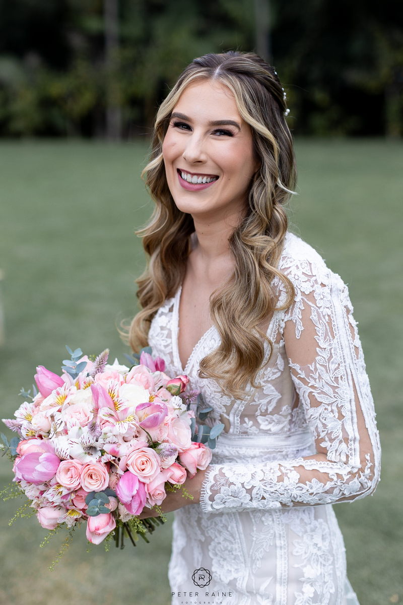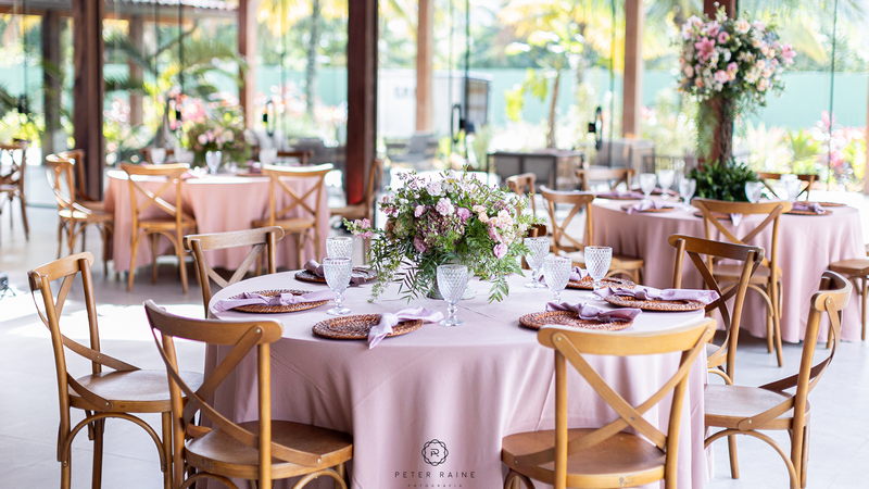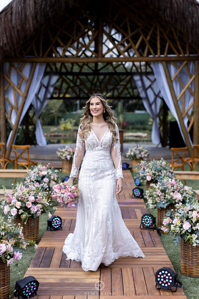 A decoração estava impecável, com arranjos de flores naturais que complementavam a beleza natural do local. A paleta de cores escolhida pelo casal, trouxe uma sensação de frescor e harmonia ao ambiente. Um casamento mais que inspirador!