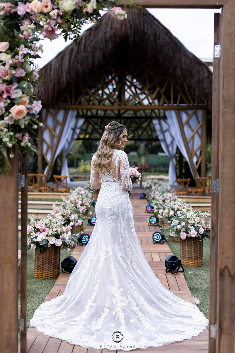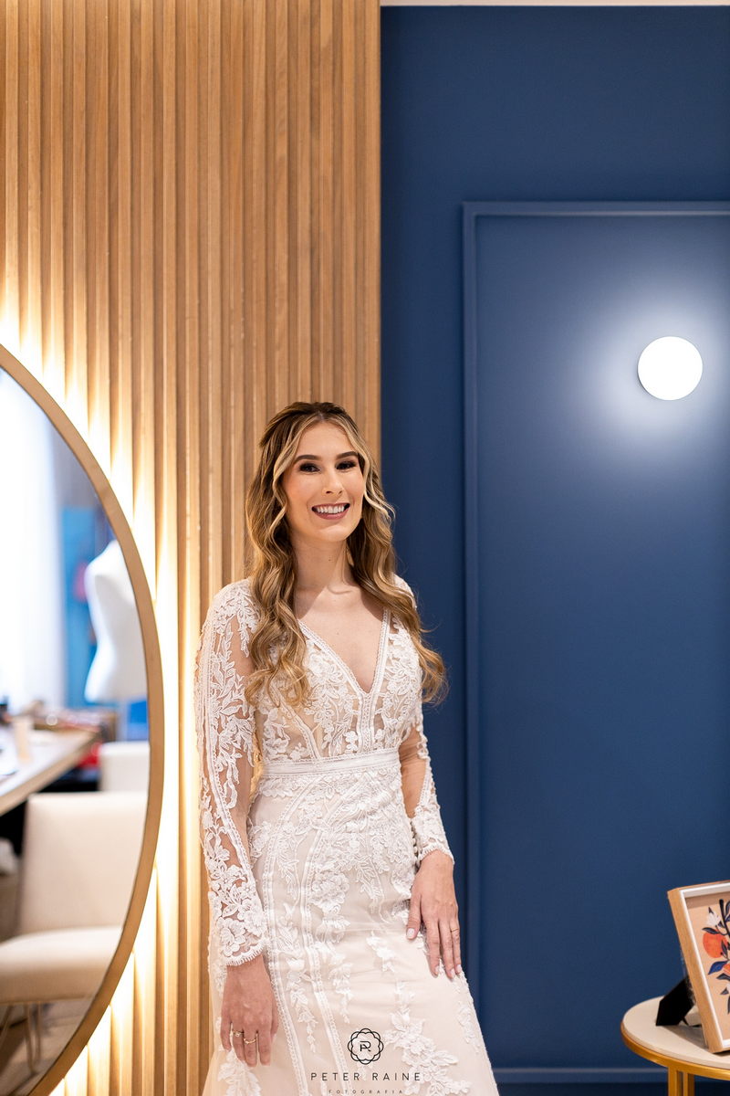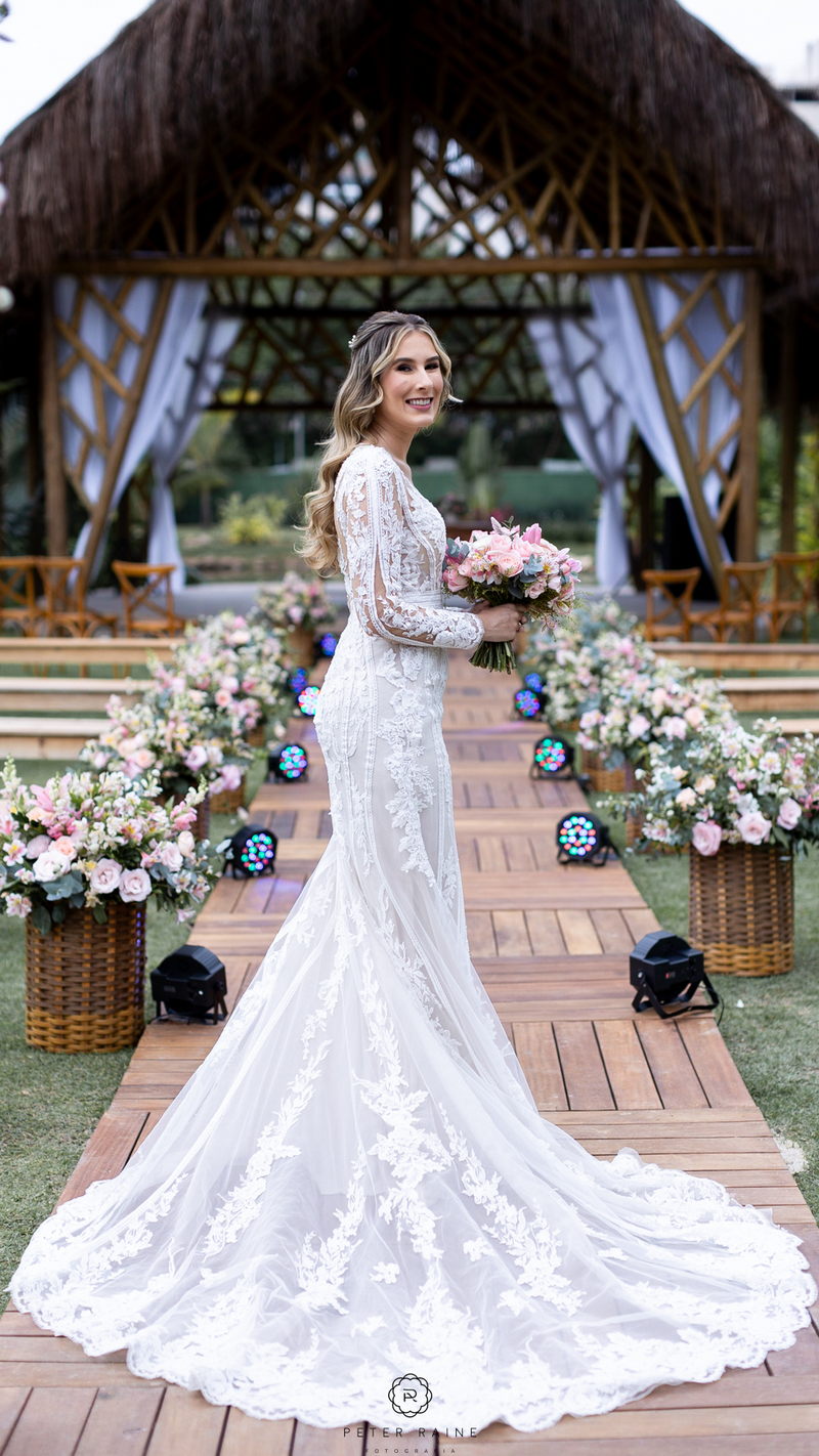 O vestido de noiva La Modelista da Emanuela era simplesmente deslumbrante. Com lindo trabalho em transparência, detalhes delicados em renda e decote frontal diferenciado, ela parecia uma verdadeira princesa moderna. O toque especial do look ficou por conta do penteado bem romântico e a maquiagem impecável da @surodriguesbeauty.