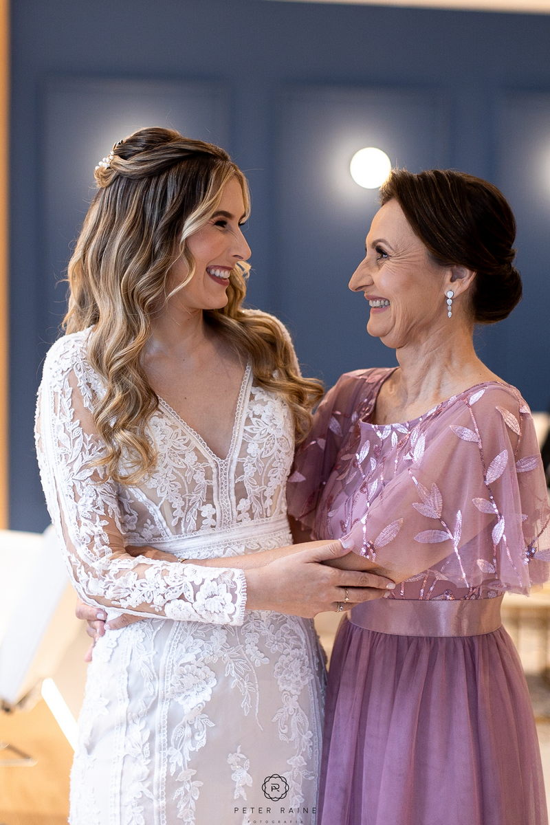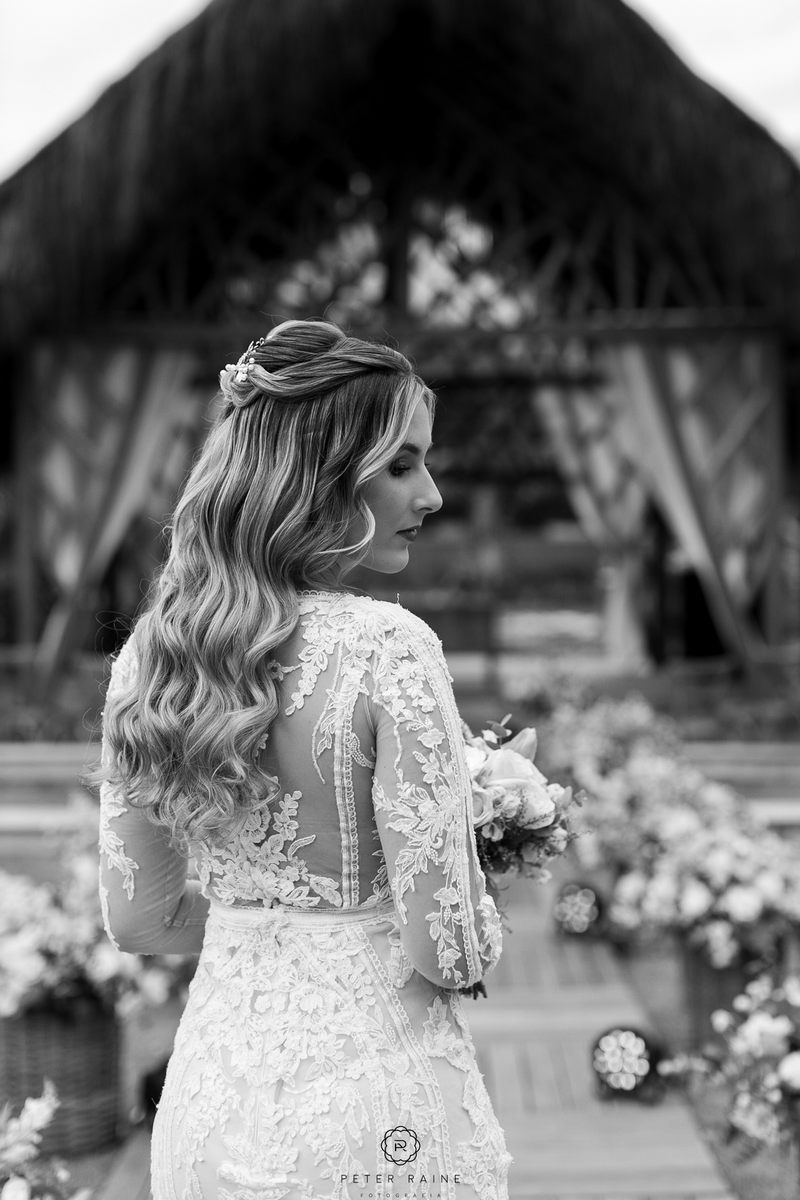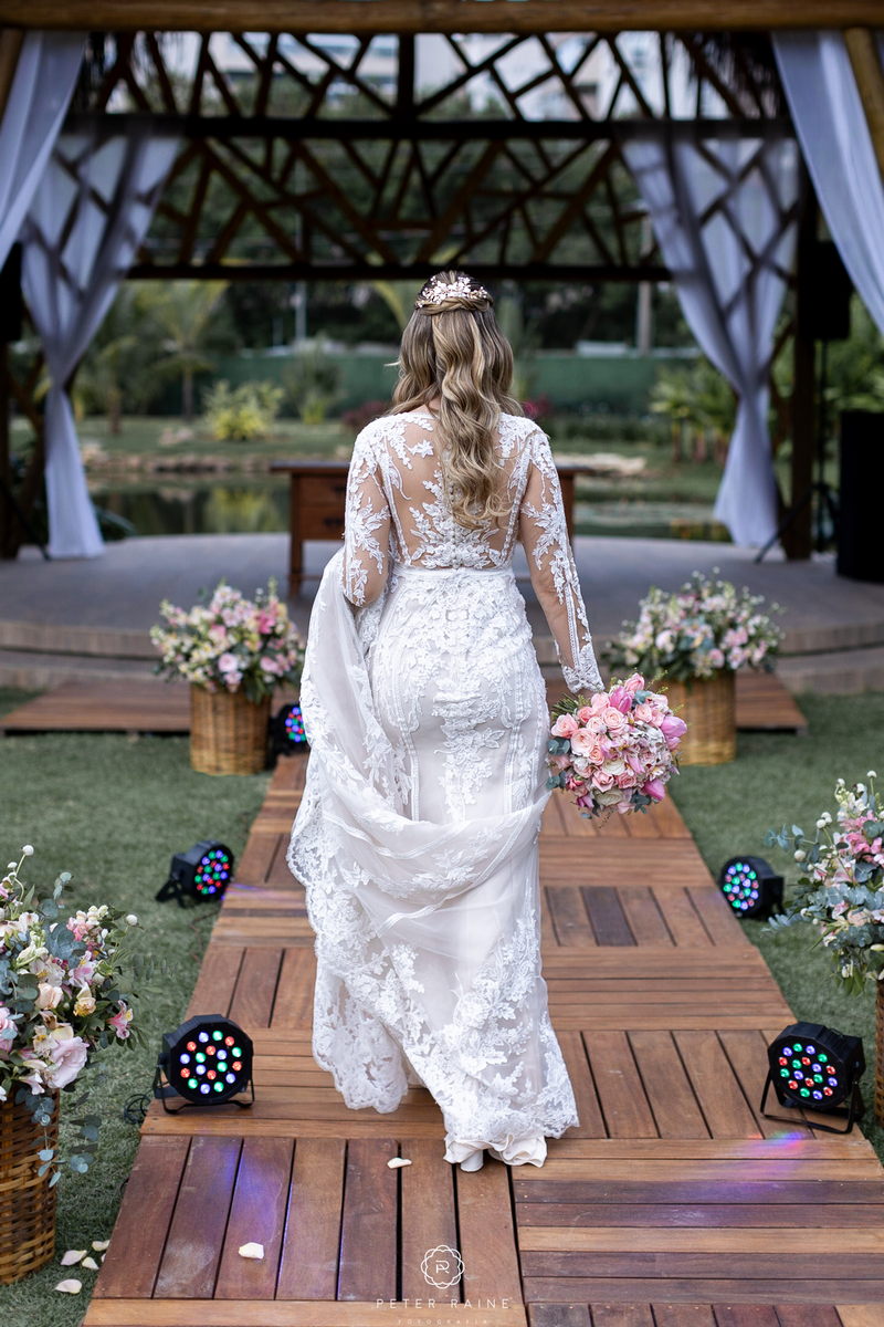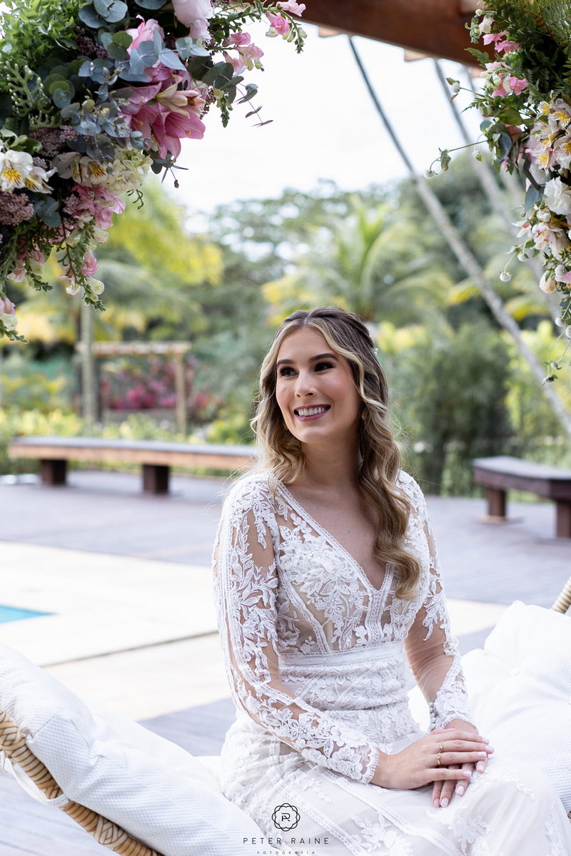 O vestido de noiva La Modelista da Emanuela era simplesmente deslumbrante. Com lindo trabalho em transparência, detalhes delicados em renda e decote frontal diferenciado, ela parecia uma verdadeira princesa moderna. O toque especial do look ficou por conta do penteado bem romântico e a maquiagem impecável da @surodriguesbeauty.