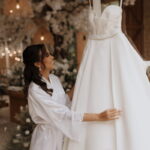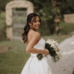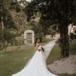 A Tatiane estava absolutamente radiante em seu vestido de noiva da La Modelista. O modelo minimalista estilo princesa, com decote tomara que caia, destacou a sua beleza e elegância. O encantador trabalho no busto adicionou um toque de sofisticação ao vestido, enquanto a fenda frontal revelava graciosamente os passos da noiva. A cauda belíssima complementou o visual, criando um efeito deslumbrante conforme a noiva caminhava em direção ao altar. A maquiagem impecável, cuidadosamente criada pela @aglaupemakeup, realçou ainda mais a beleza da noiva.
