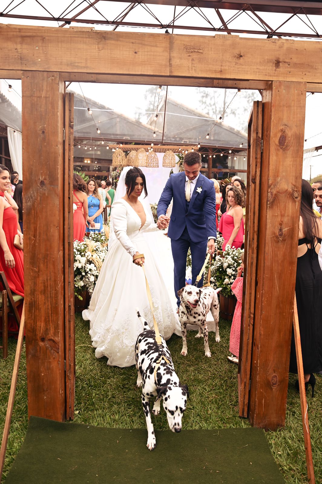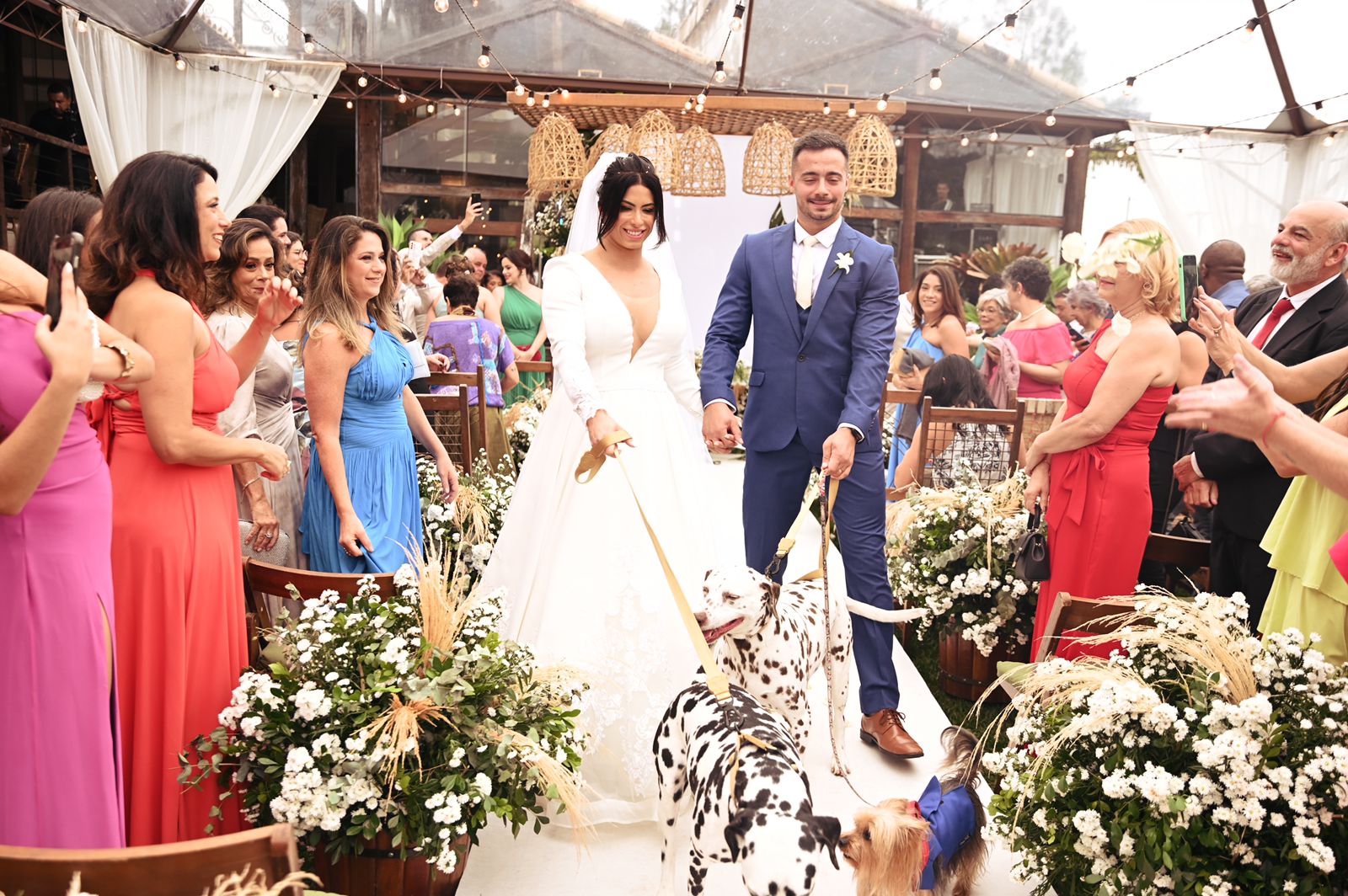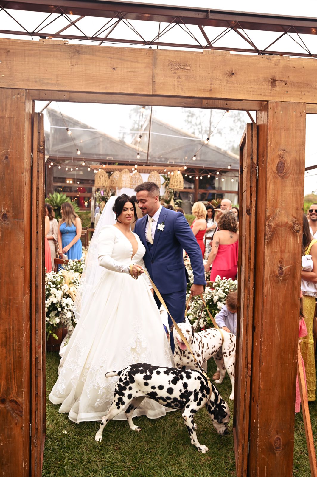 A noiva escolheu um vestido de noiva da renomada Loja La Modelista, que refletiu sua personalidade minimalista e ao mesmo tempo, proporcionou uma elegância digna de uma rainha. O destaque ficou por conta do lindo trabalho em renda nas costas do vestido, que adicionou um toque de romantismo e sofisticação à sua aparência. Mariana brilhou como uma estrela em seu caminho rumo ao altar.